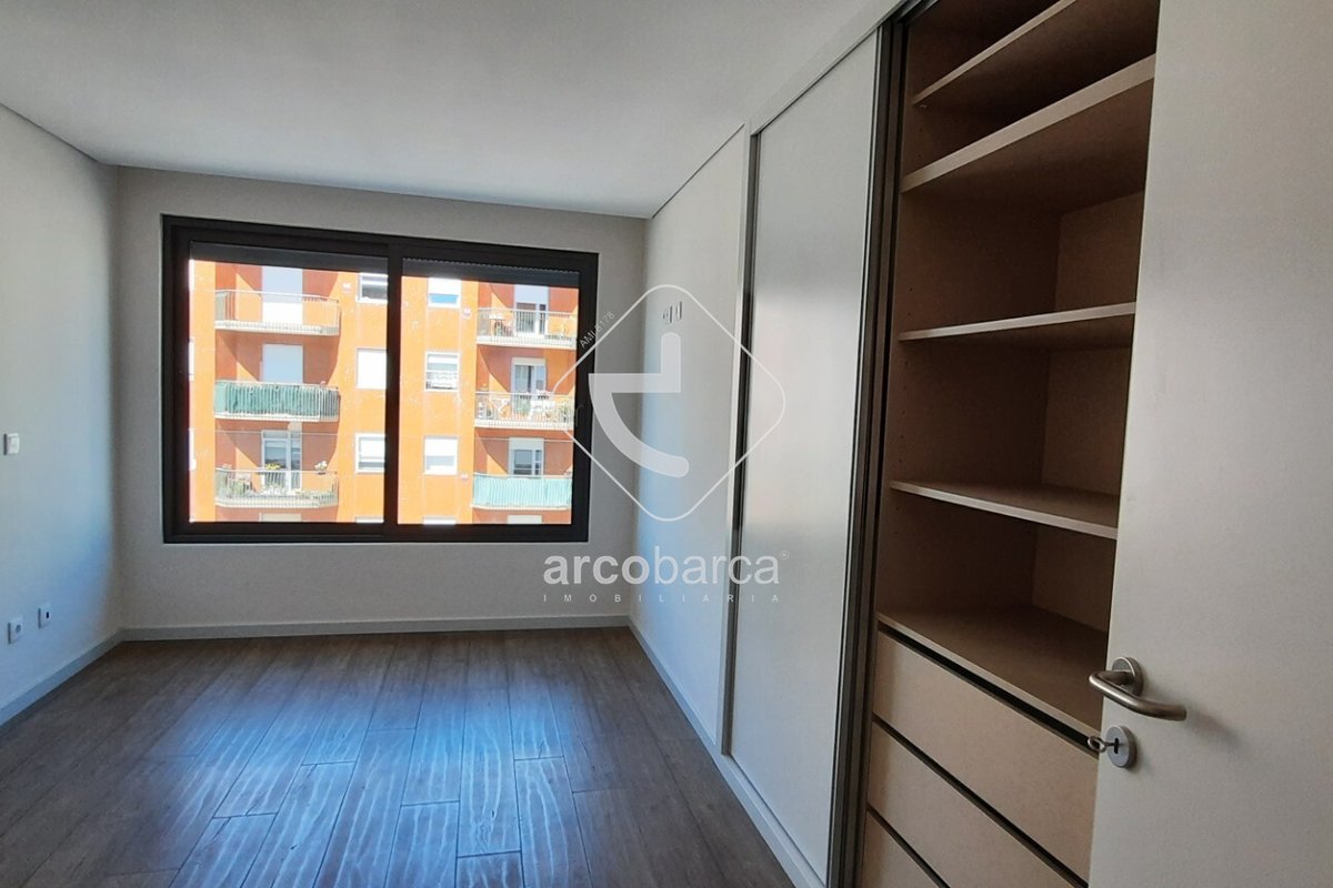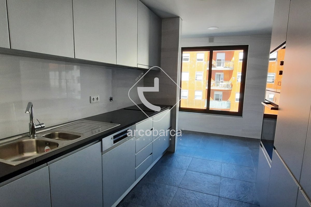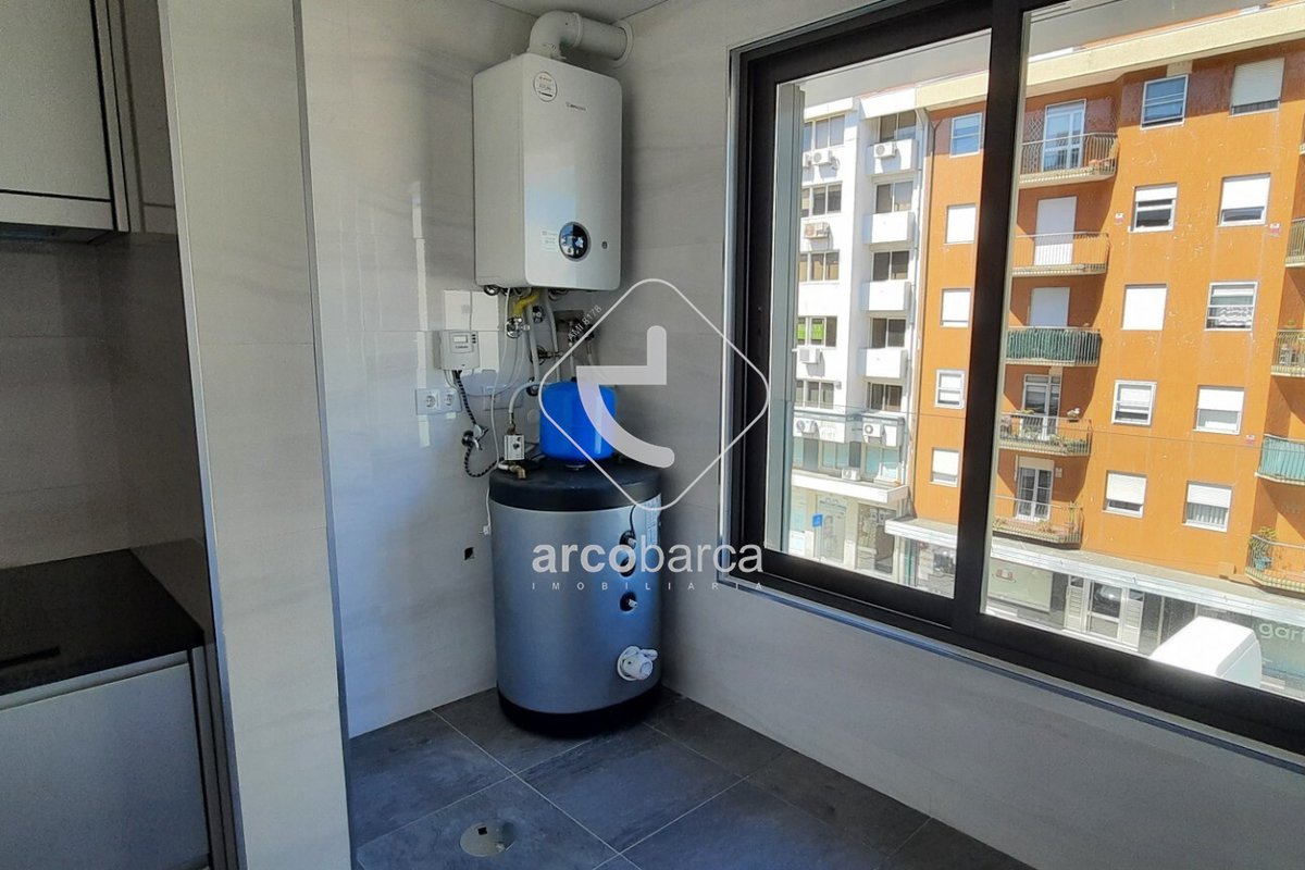 A zona social do apartamento desenvolve-se por Hall de entrada, cozinha equipada com os seguintes eletrodomésticos, “Bosch” placa, forno, exaustor, máquina lavar loiça e combinado, lavandaria com luz natural, QB serviço e uma sala