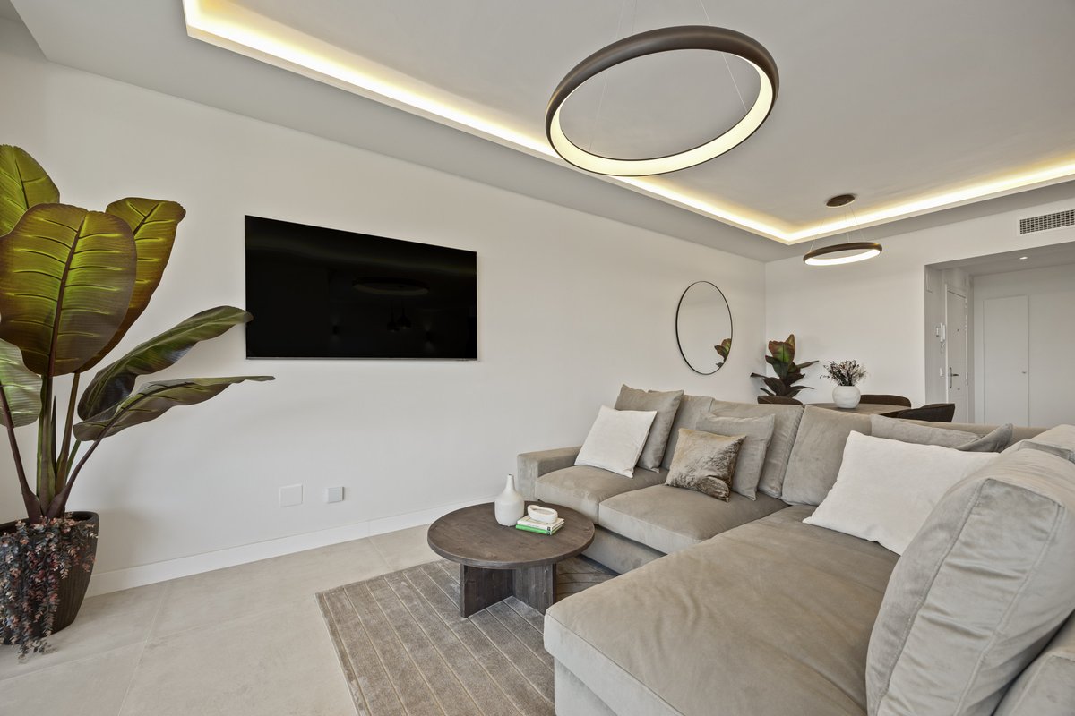 Positioned within the elevated residential enclave of Altos de La Quinta in Benahavís, this three-bedroom apartment combines generous proportions with open views across sea, mountain, and landscaped surroundings. Originally constructed in January 2005 and scheduled for renovation in 2025, the property offers an updated interpretation of contemporary Mediterranean living within a secure gated community. Its south-east orientation captures morning light while maintaining a calm and temperate interior atmosphere throughout the day.