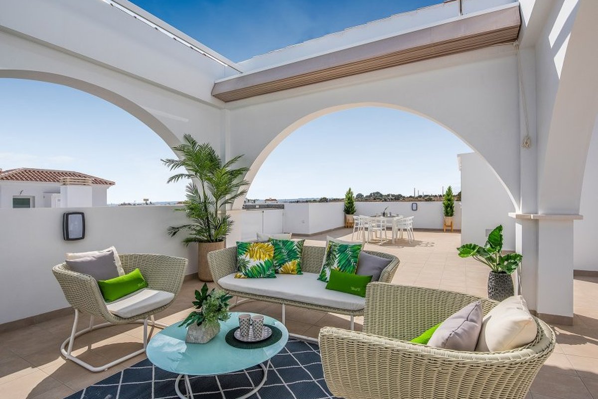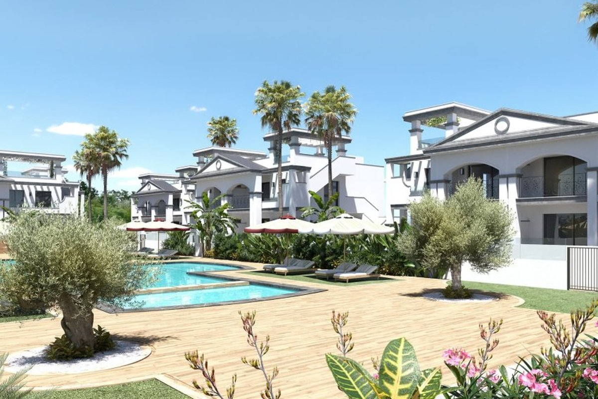 Located in the charming Ciudad Quesada, this exclusive collection of 19 bungalows offers a perfect blend of comfort and style. With options for high-bungalow and low-bungalow, each property is designed to meet modern needs, offering a cozy and functional space. The location is ideal for those seeking a peaceful environment without sacrificing proximity to essential services. Just 39 km from the airport, these homes are perfect for both permanent residence and vacation getaways.OUTDOOR AREASThe exteriors of these bungalows are designed to maximize enjoyment of the Mediterranean climate. Each property features a private garden, perfect for relaxing or enjoying outdoor activities. The terraces offer additional space for entertainment or simply to enjoy the views. Additionally, the presence of a solarium provides an ideal place to sunbathe in total privacy. The inclusion of a pergola adds a touch of elegance and functionality, allowing enjoyment of the outdoor space at any time of day.INDOOR AREASThe interior of the bungalows is carefully designed to offer comfort and style. With two bedrooms and two bathrooms, each space is optimized for comfort. The porcelain stoneware floors add a modern touch and are easy to maintain. Electric shutters and built-in wardrobes are standard features that enhance the home's functionality. Additionally, the pre-installation of air conditioning ensures the indoor climate is always pleasant. The layout includes a garage, providing a secure space for the vehicle.COMMON AREASThe common areas of this residential complex are designed for the enjoyment of all residents. Well-maintained landscaped areas offer a green and relaxing environment, ideal for walks or moments of rest. The communal pool is a perfect meeting point for socializing or simply cooling off during the warm summer days.