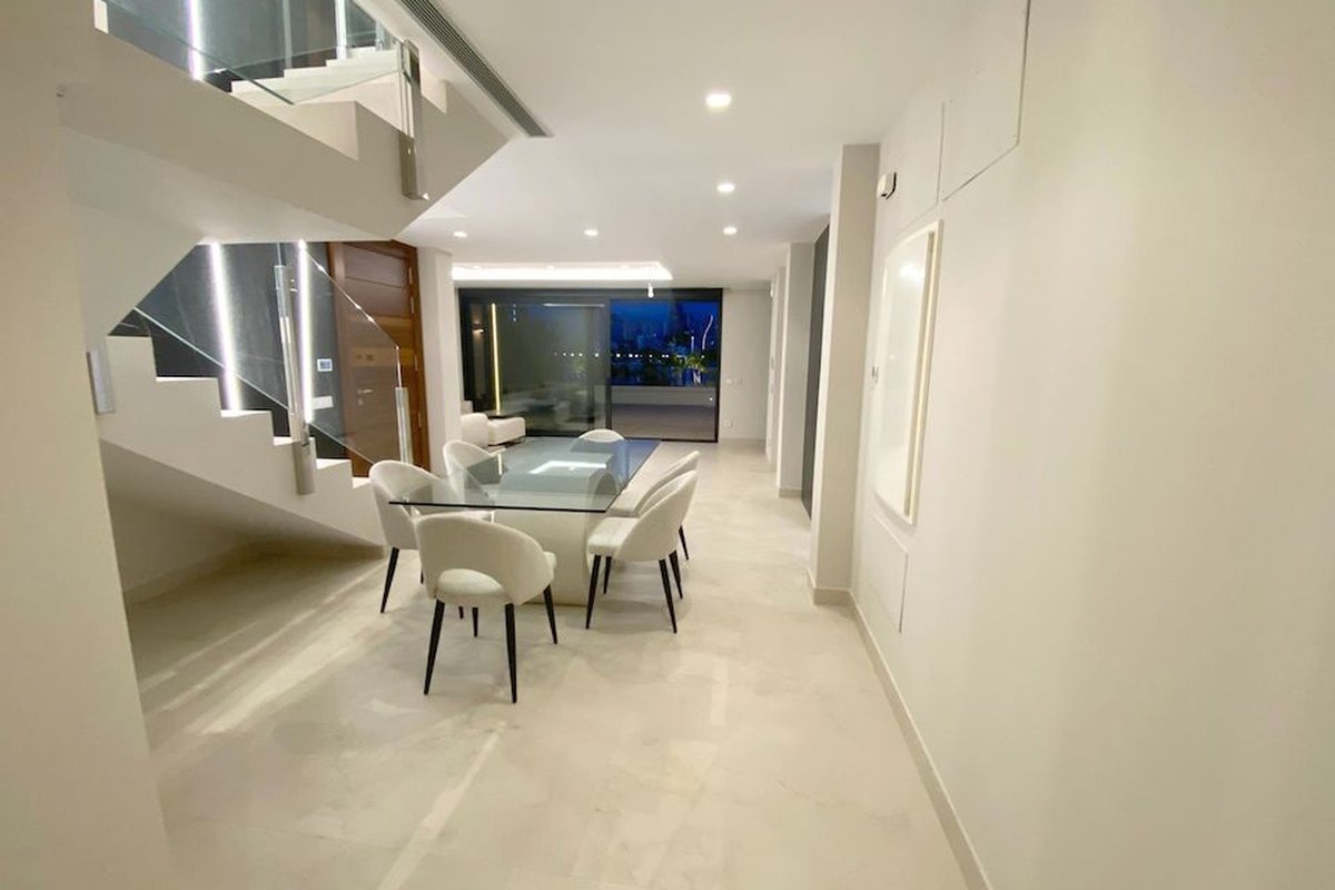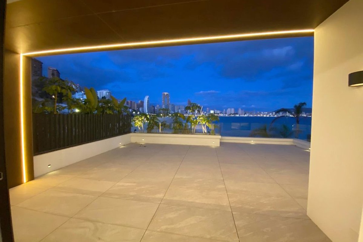 Last luxury new-build frontline apartment for sale in BenidormThis frontline apartment is located directly on Poniente beach in Benidorm and offers unobstructed views of the Mediterranean Sea. The property is completed, ready to move in and finished with high-quality materials. It is the last available duplex in this prestigious building.DescriptionThe layout includes a spacious living and dining room, a fully equipped kitchen, four bedrooms, an office, several bathrooms with showers, a guest toilet and two spacious terraces with unobstructed views of the sea and the Benidorm coastline. The property has a private heated swimming pool.On the top floor of the building, there is a communal jacuzzi with panoramic views of the coast. Both floors of the duplex have their own access and are accessible by lift. Using the stairs is therefore not necessary.The apartment is equipped with extensive amenities, including underfloor heating, ducted air conditioning, a central music system for indoors and outdoors, a heated swimming pool, an alarm system, camera security, home automation and a spacious garage.Special featuresPrime location on Poniente beachPrivate heated swimming poolTwo terraces with sea viewsLift to both floorsSpacious garage includedWhy view this duplexDirect access to the beachHigh-quality finish and installationFully furnished and ready to move inUnobstructed sea viewLast available unit in the buildingThis is the very last chance to own this frontline duplex for sale in Benidorm.Would you like to view it? Schedule an appointment with one of our staff members today.