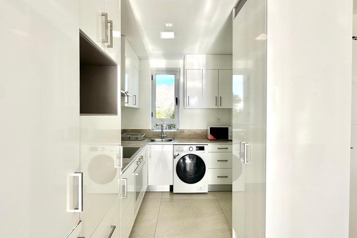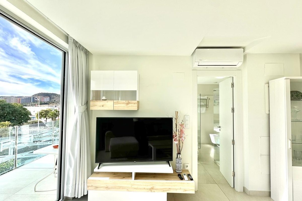 This magnificent apartment, located on the third floor of one of Benidorm's most exclusive residential complexes, offers a privileged setting just one kilometer from Finestrat Cove, one of the most sought-after areas for those seeking tranquility without sacrificing proximity to the sea and all amenities. The residential complex in which the property is located stands out for its impressive range of communal areas, designed to provide a truly luxurious residential experience. Facilities include an outdoor swimming pool surrounded by perfectly maintained gardens, a heated pool ideal for year-round enjoyment, a jacuzzi, a sauna, and spaces designed for wellness and relaxation. All this creates an exclusive, safe, and comfortable environment that enhances the value of the property. The apartment has a modern and functional layout that maximizes the spaciousness and brightness in each room. It has two bedrooms, both of excellent size, and two bathrooms, one of which is en suite, equipped with elegant, high-quality finishes. The living-dining room stands out for its spaciousness and natural light, enhanced by its south-facing orientation, which guarantees direct light for most of the day. The open-plan American-style kitchen, integrated into the living room, adds a contemporary and practical touch, providing a perfect space for both everyday living and social gatherings. Thanks to its privileged location, the property is surrounded by all essential services, such as supermarkets, shopping centers, restaurants, public transport, and leisure areas, making this apartment an exceptional option both as a primary residence and as an investment or second home. Overall, this property represents a unique opportunity to acquire a home in one of the most exclusive areas of the Costa Blanca, combining comfort, design, exclusivity, and a first-class environment.