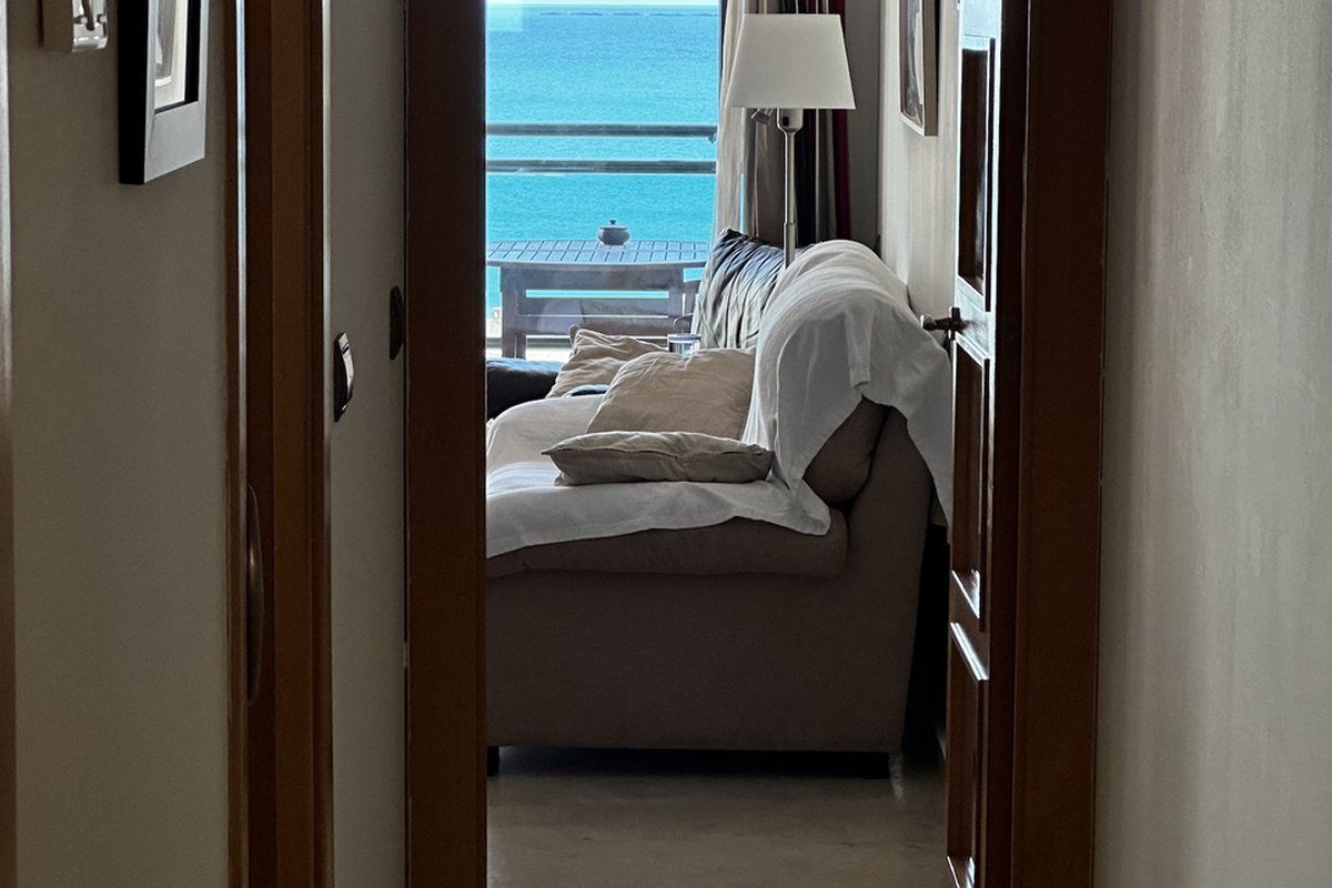 Apartment with sea views and only 100m from the beach. Very comfortable and bright. Facing east. Fully equipped kitchen, including dishwasher, osmosis water tap, induction hob, flat extractor fan, Silestone countertop, large pantry with automatic lighting when opening the door, Silestone countertop, … Bathroom with shower and hydromassage column and en-suite bathroom with bathtub. Shower screens. Thermostatic taps in both bathrooms. Very comfortable under-sink cabinets with pull-out drawers. Master bedroom with en-suite bathroom and sea views. Fitted and lined wardrobes with drawers. All new mattresses. Sliding doors in bathrooms and kitchen, for better use of space. LED lighting throughout the house. Central air conditioning (cold and heat recently renovated). 43" LED TV in the living room and 32" in the master bedroom (both new). Internet. Safe. Sea views in master bedroom and living room. Awning on the terrace, renovated this year. Large storage room and parking space.Very close to restaurants, supermarkets, schools. In one of the best areas of Guardamar and only 100m from the sea.