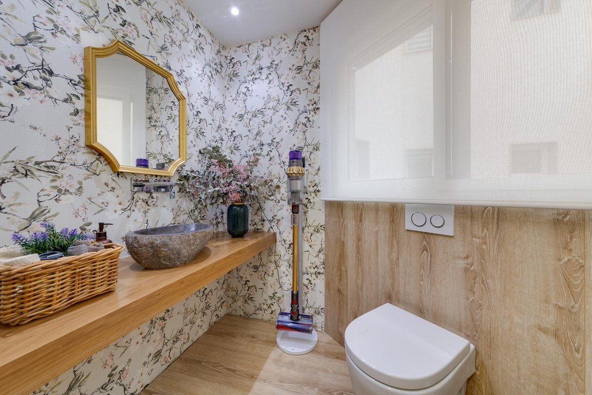 This apartment is a dream that can become a reality! It couldn't be more beautiful! This property offers you comfort and style. The property is distributed in two floors. The house is accessed through the upper floor, main floor. In it you will find a bright living-dining room with a modern open kitchen with an island fully equipped, a toilet and a large bedroom with a dressing room and an en-suite bathroom. On the ground floor, you will enjoy a large living room and three other large bedrooms, one of them with an en-suite bathroom, as well as another additional bathroom. It also has a storage/laundry area and a charming patio with artificial grass, where you can enjoy and relax. Located in the center of Torrevieja, close to all the necessary services and just 200 meters from Playa del Cura. In addition, other beaches are a few minutes walk away, the promenade and different cultural monuments of the city. Don't miss this opportunity to live in this unique and wonderful house!