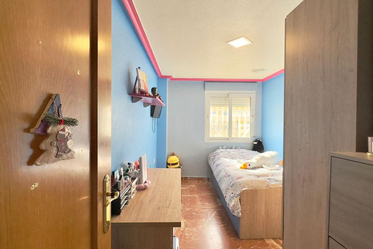 Spacious apartment on San Pascual Street, in the heart of Torrevieja, designed for those who need real space without sacrificing the convenience of being in the city center. Four bedrooms and two bathrooms make this apartment a true family home, a place where everyone can have their own space, their own pace, and their own privacy, while also sharing moments in the common areas. Furnished and ready to move in, it's ideal for large families, those who work remotely and need several rooms, or those who frequently receive visitors and want to accommodate them comfortably. From the moment you enter the building and go up to the apartment, you'll feel that classic urban center apartment, with generous spaces and rooms that feel lived-in, designed to be enjoyed. Upon opening the door, you're greeted by an entrance hall that leads to the rest of the apartment and sets the tone: a home where there's room for everyone, from a large family to a couple who want to combine living and working from home. It's the kind of apartment that allows you to think long-term, about years of memories, gatherings, celebrations, and routines. The separate kitchen becomes one of the home's strongest features. Separated from the living room, it allows for peaceful cooking, keeping things tidy, and focusing on the ritual of eating without mixing smells and noises with the rest of the living area. It's easy to imagine daily life: early breakfasts for all family members, with cups, toast, and quick conversation; leisurely lunches, perhaps following a traditional recipe; impromptu dinners, where the aroma of a stew, pasta, or a baked dish fills the air. The kitchen is not just a functional space; it's the quiet heart of many everyday scenes: someone preparing a late-night coffee while the rest of the house is already resting, or a quiet moment of conversation between two people while everyone else is in their rooms. The living-dining room is the true social hub of the apartment. Everyone gathers here: it's the space for watching a movie as a family, celebrating birthdays, setting a large table for special occasions, welcoming friends for the day, or relaxing after a day at the beach or at work. It's easy to imagine a spacious sofa, a generous dining table, a TV area, and a reading nook with a comfortable armchair. This layout allows for many configurations: from a more formal space to a more relaxed one, always with the idea that it's the place where the best conversations and moments are shared. The four bedrooms offer a flexibility that few homes provide. The master bedroom can become a true personal sanctuary, a spacious area for deep rest, decorated with soft tones, pleasant textiles, and details that invite you to disconnect. The other three bedrooms can cover practically any need: rooms for children with their desks and belongings, rooms for guests who come from out of town to spend a few days on the coast, or even rooms dedicated to remote work, a home gym, a playroom, or a study. In a city like Torrevieja, where many combine work and leisure time, having so many rooms opens up a huge range of possibilities. The two bathrooms distributed throughout the home make daily life much smoother. In a large family, having two separate bathrooms prevents endless waits in the morning and reduces stress during peak hours. Everyone can organize themselves at their own pace: early showers, personal care routines, getting ready to go out—everything becomes simpler. At night, these spaces become places to disconnect: a bit of hot water before bed, a moment of silence when the rest of the house is quiet.