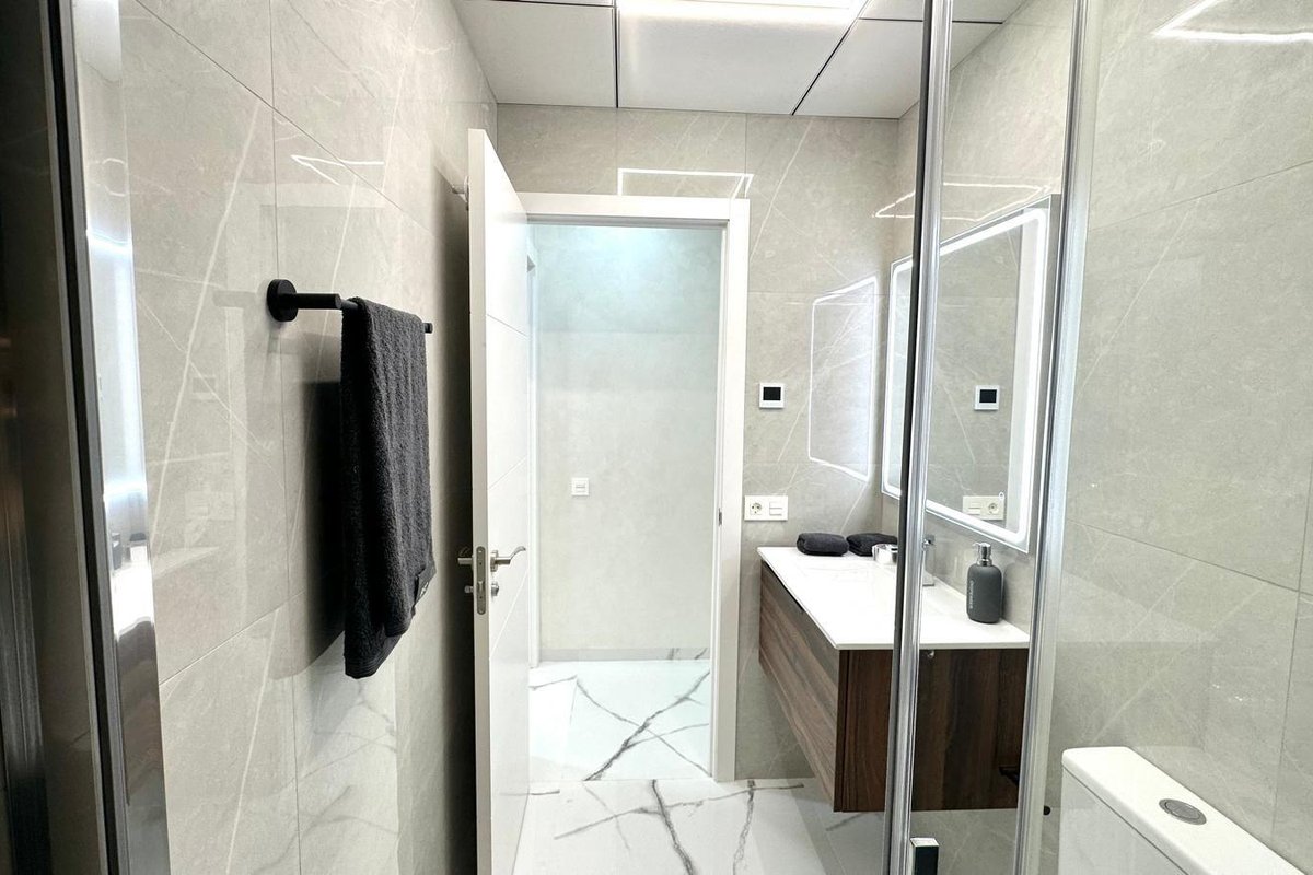 Spectacular renovated ground floor apartment next to Playa del Cura beach Located on the second line of the iconic Playa del Cura beach, this property represents a unique opportunity to enjoy comfort, design and proximity to the sea. With a total usable area of 90 m², this fully renovated ground floor apartment perfectly combines modernity, comfort and quality in every detail. From the outset, the property stands out for its excellent comprehensive refurbishment, where every aesthetic and functional aspect has been carefully considered. The property is delivered fully furnished and decorated in a modern and elegant style, using top-quality materials. All the furniture is new, as are the appliances, allowing you to move in without the need for any additional investment. The interior layout is spacious and well thought out. It has a cosy open-plan kitchen, equipped with contemporary furniture and connected directly to a bright open-plan living-dining room. This main room faces south, ensuring excellent light throughout the day. It also has a large panoramic window equipped with electric blinds, allowing you to enjoy natural light and the Mediterranean breeze in complete comfort. Comfort is assured thanks to its centralised air conditioning system with ECO technology, which guarantees an ideal temperature throughout the year while optimising energy consumption. The sleeping area consists of two spacious double bedrooms, both tastefully decorated and designed to offer maximum tranquillity. The master bedroom has an en-suite bathroom, providing privacy and functionality. The second bathroom, equally modern and fully equipped, serves the rest of the property. As an ideal complement, the property has a fabulous back garden, a perfect outdoor space for relaxing, enjoying family gatherings or creating a green and peaceful corner in the heart of the city. In short, this property combines all the qualities that define an exclusive home on the coast: an unbeatable location, high-quality materials, modern fittings and a design focused on comfort. Located just a few metres from the sea, it is an ideal choice as a permanent residence, holiday home or secure investment in one of the most sought-after areas of Torrevieja.