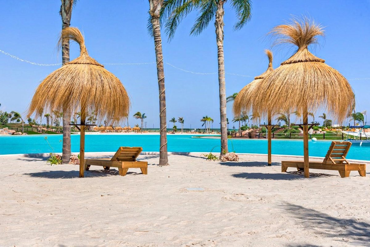 This stunning apartment combines elegance, comfort and natural surroundings, offering a truly unique lifestyle in one of the most promising areas of the Costa Cálida. It features 2 spacious bedrooms and 2 full bathrooms, designed for maximum comfort. The bright living-dining area opens onto a private terrace, perfect for enjoying the Mediterranean sun or dining outdoors while overlooking the beautiful landscaped gardens of the complex. Residents have access to two communal swimming pools — one of them heated — as well as an outdoor gym, jacuzzi and children’s play area, providing everything you need to enjoy life all year round. The property also includes a private underground parking space and a storage room, ensuring both convenience and security. The residential complex itself is a truly unique setting, built around a spectacular turquoise artificial lake, surrounded by private beaches, lush green areas, sports facilities, a mini golf course, and a modern clubhouse with restaurant and bar. It’s a secure, gated and meticulously maintained environment, created for those who seek well-being, privacy and exclusivity. Located in the Region of Murcia, where the sun shines all year round, this area offers a warm climate, calm waters, and a bright blue sky that enhances the quality of life every single day.