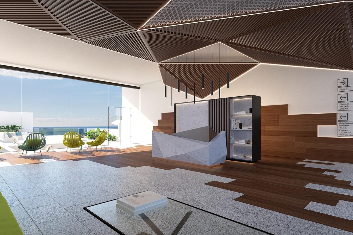 Landscaped routes through green areas connect the different phases and large communal areas: coworking area, pilates room, gym, sauna, Turkish bath, massage room, heated swimming pool, multi-purpose room, bar with outdoor terrace and covered relaxation area next to the main pool. Next to the main pool there will be a solarium area to enjoy the more than 320 days of sunshine a year, as well as the average annual temperature of 20ºC of the Costa del Sol.