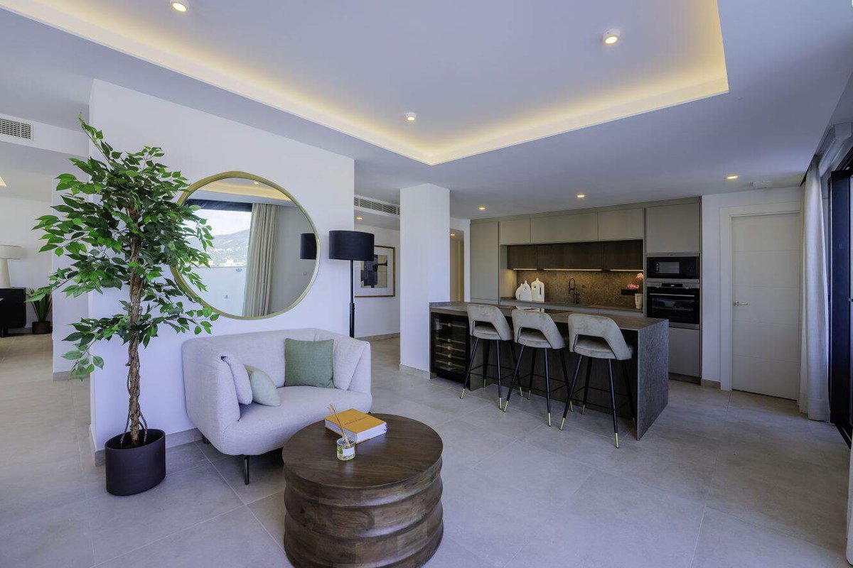 Located in a prestigious area of the Costa del Sol, Fuengirola just 20 minutes drive from Malaga airport to the east and Marbella center to the west. 100 meters from the beach, in the city center surrounded by all kinds of services and shops. 2 and 3-bedroom apartments with the highest quality finishes, open and bright spaces with large terraces and private gardens. The residential offers excellent common areas to enjoy a comfortable and relaxed lifestyle: coworking, gym, outdoor swimming pools for children and adults, complete spa with indoor pool, sauna and Jacuzzi, cinema room and gastro bar. Covered garage and storage room included in the sale price.