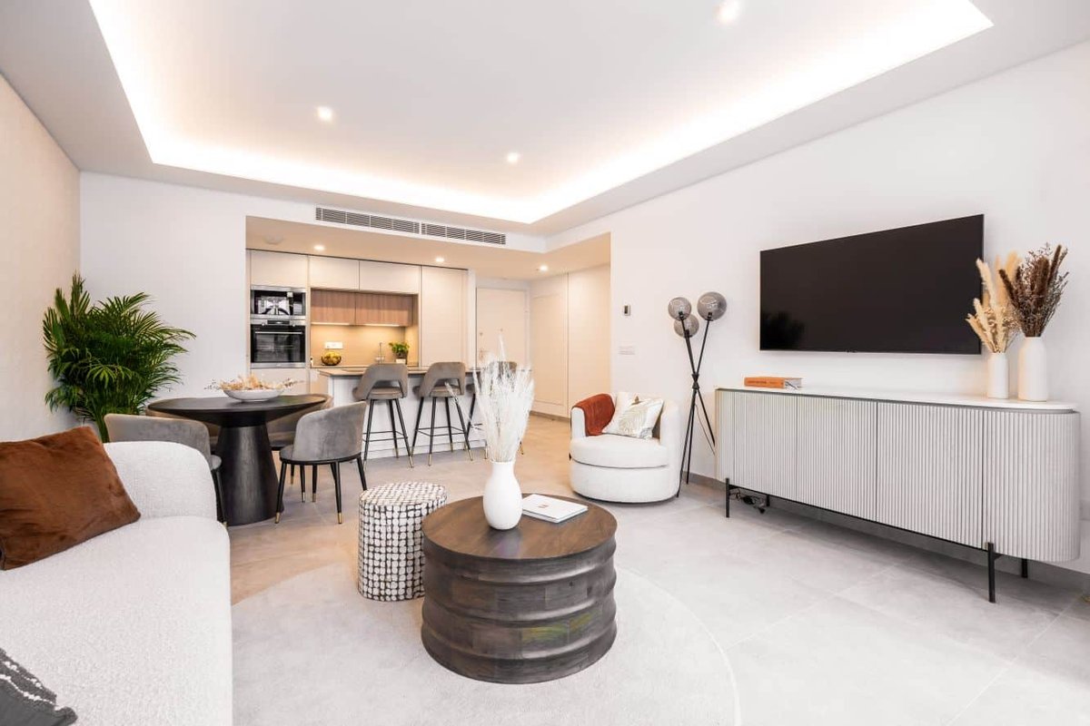Located in a prestigious area of the Costa del Sol, Fuengirola just 20 minutes drive from Malaga airport to the east and Marbella center to the west. 100 meters from the beach, in the city center surrounded by all kinds of services and shops. 2 and 3-bedroom apartments with the highest quality finishes, open and bright spaces with large terraces and private gardens. The residential offers excellent common areas to enjoy a comfortable and relaxed lifestyle: coworking, gym, outdoor swimming pools for children and adults, complete spa with indoor pool, sauna and Jacuzzi, cinema room and gastro bar. Covered garage and storage room included in the sale price.