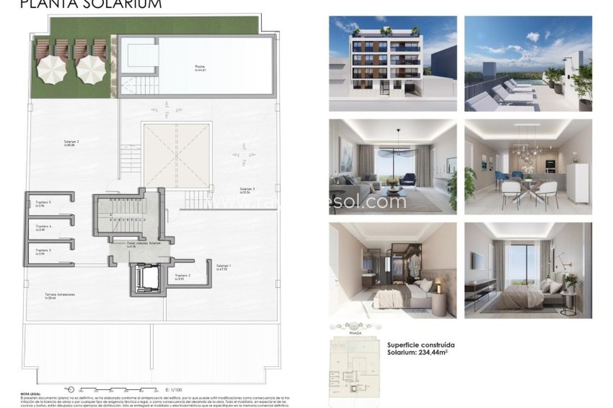 Residents can enjoy an exclusive rooftop solarium featuring a designer swimming pool with breathtaking views of the Mediterranean Sea and the expansive pine forest. The building includes a lift to ensure comfortable access to all floors, making daily life practical and enjoyable.