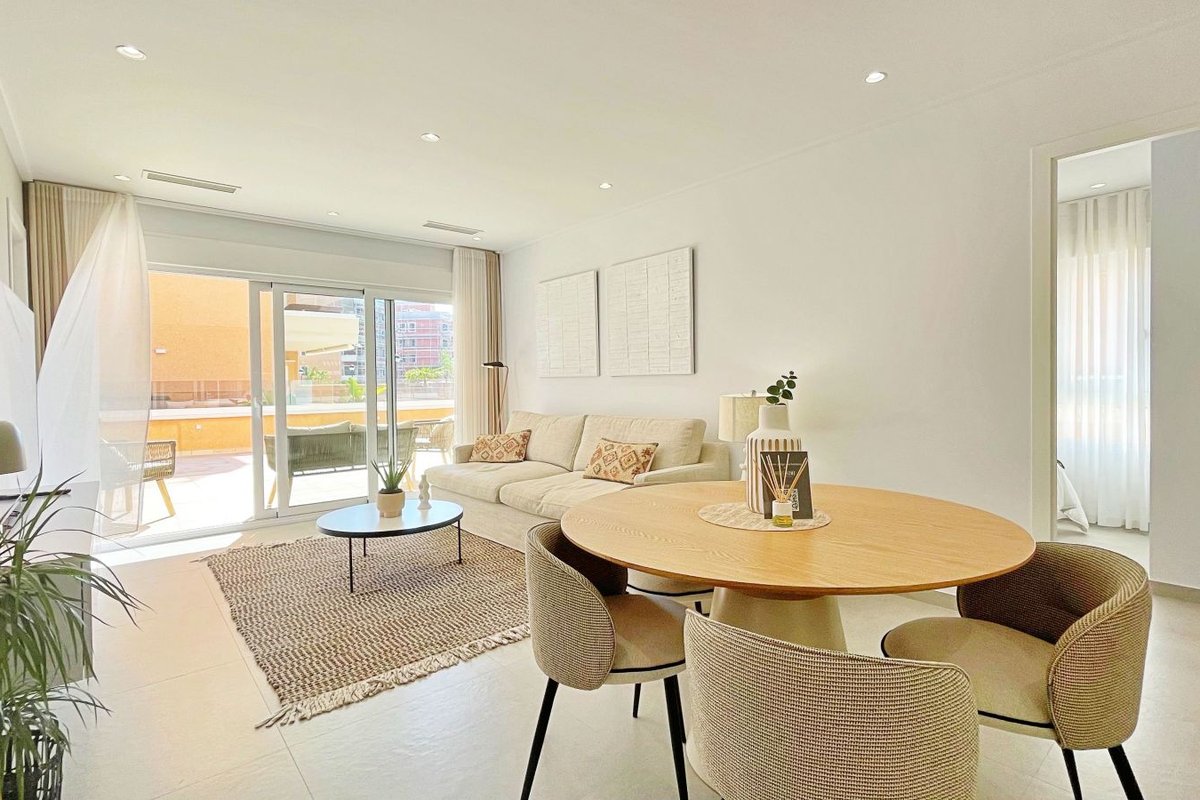 Translated to English: Te presentamos este magnífico apartamento de más de 100 m² construidos, ubicado en una de las zonas más demandadas de la Costa Blanca: El Raso, Guardamar del Segura. Una vivienda moderna, luminosa y diseñada para disfrutar del sol y la comodidad durante todo el año.