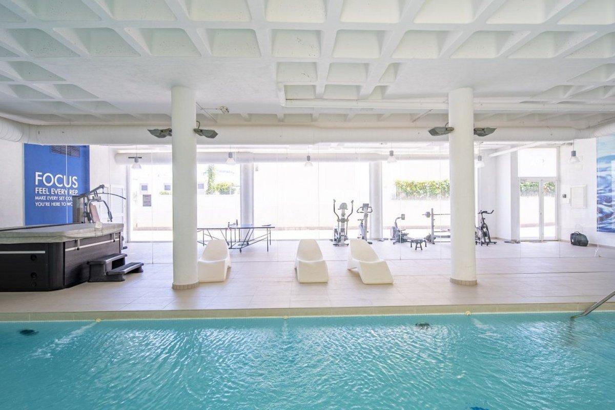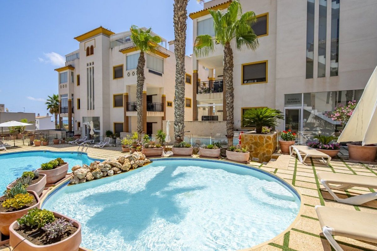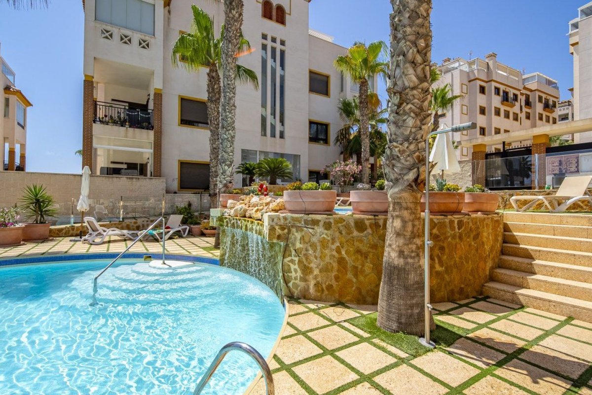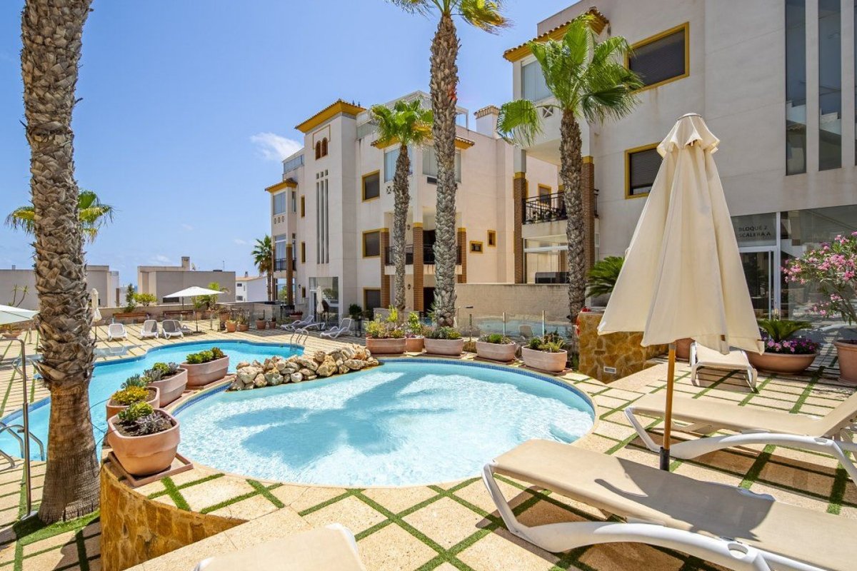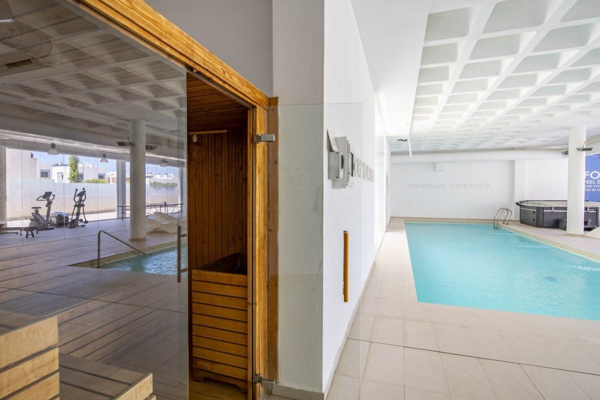 The complex boasts a communal pool with waterfall and beach area, indoor heated pool, gym, sauna, and changing rooms. Built in 2013, it is just 850 m from Guardamar beach and close to bars, shops, and restaurants. Alicante Airport is 30 minutes away.