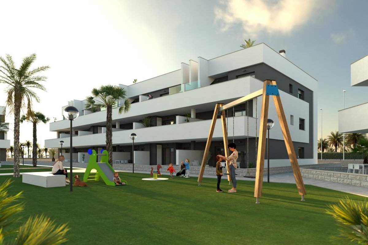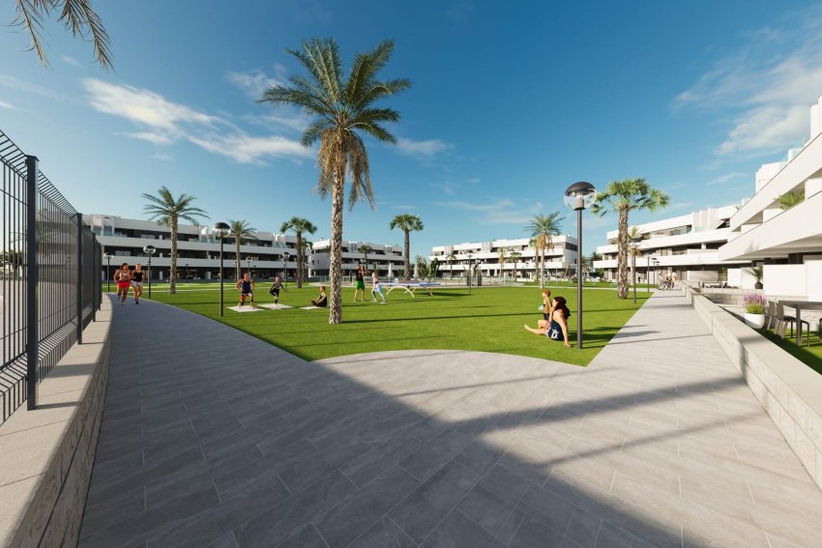 Located in the charming town of Guardamar del Segura, this exclusive residential offer consists of 97 properties carefully designed to offer maximum comfort and style. The housing options include Apartments, ground-floor, and Penthouses, each tailored to different needs and preferences. The proximity to the sea, just 4 km away, allows for the enjoyment of the sea breeze and a privileged natural environment. Additionally, the airport is 38 km away, facilitating access to international connections. All properties are fully furnished and equipped with modern appliances, ensuring a comfortable and hassle-free living experience. Porcelain stoneware floors add a touch of elegance and durability, while electric shutters and video intercom add an additional level of security and convenience. Air conditioning and built-in wardrobes complete the set of features that guarantee a cozy and functional home.OUTDOOR AREASThe exteriors of these properties have been designed to maximize enjoyment of the Mediterranean climate. Each home features a private terrace, ideal for outdoor relaxation or al fresco dining. The ground-floor and Penthouses offer the additional advantage of a private garden, providing a personal green space for leisure and tranquility. Additionally, the Penthouses have a solarium, perfect for sunbathing in total privacy. The community also offers a garage, ensuring a secure space for vehicle parking. The proximity to the sea, just 3.5 km away, allows for stunning views and quick access to local beaches, making this location ideal for sea lovers.INDOOR AREASThe interiors of these homes have been meticulously designed to offer a modern and cozy environment. With options of 2 and 3 bedrooms, and 2 bathrooms, each property is crafted to meet the needs of families of different sizes. The spaces are intelligently distributed to maximize functionality and comfort. The inclusion of air conditioning ensures a pleasant climate year-round, while built-in wardrobes provide efficient and tidy storage. The kitchen, equipped with state-of-the-art appliances, facilitates meal preparation and entertaining. Porcelain stoneware floors not only add an aesthetic touch but are also easy to maintain, ensuring the home remains immaculate with minimal effort.COMMON AREASThe community offers a variety of common areas designed for the enjoyment of all residents. Among them is a communal pool, ideal for cooling off during hot summer days. Sports enthusiasts can take advantage of the communal gym, equipped with everything needed to maintain an active lifestyle. For the little ones, there is a playground where they can play and socialize in a safe environment. The landscaped areas provide a tranquil space for walking or simply relaxing outdoors. Additionally, the community features a mini golf, offering a fun activity for all ages. The communal garage and parking ensure there is always ample space for residents' and visitors' vehicles.GUARDAMAR DEL SEGURAGuardamar del Segura, on the Costa Blanca, stands out for its extensive fine sandy beaches and its natural environment. Its beaches, such as Playa Centro and Playa de la Roqueta, are ideal for relaxation and water sports, while its dunes and pine forests form a protected landscape. Tourism in Guardamar focuses on its beaches and its natural surroundings, ideal for hiking and bird watching in the Parque Natural de las Dunas de Guardamar. The lifestyle in Guardamar is relaxed and close to the sea. Residents and visitors enjoy a quiet life, with a wide gastronomic offer based on seafood and typical dishes of the region. The community values nature and promotes outdoor living. Guardamar del Segura offers a balance between coastal tourism, nature and a serene life by the sea, attracting those seeking tranquillity in a natural environment.
