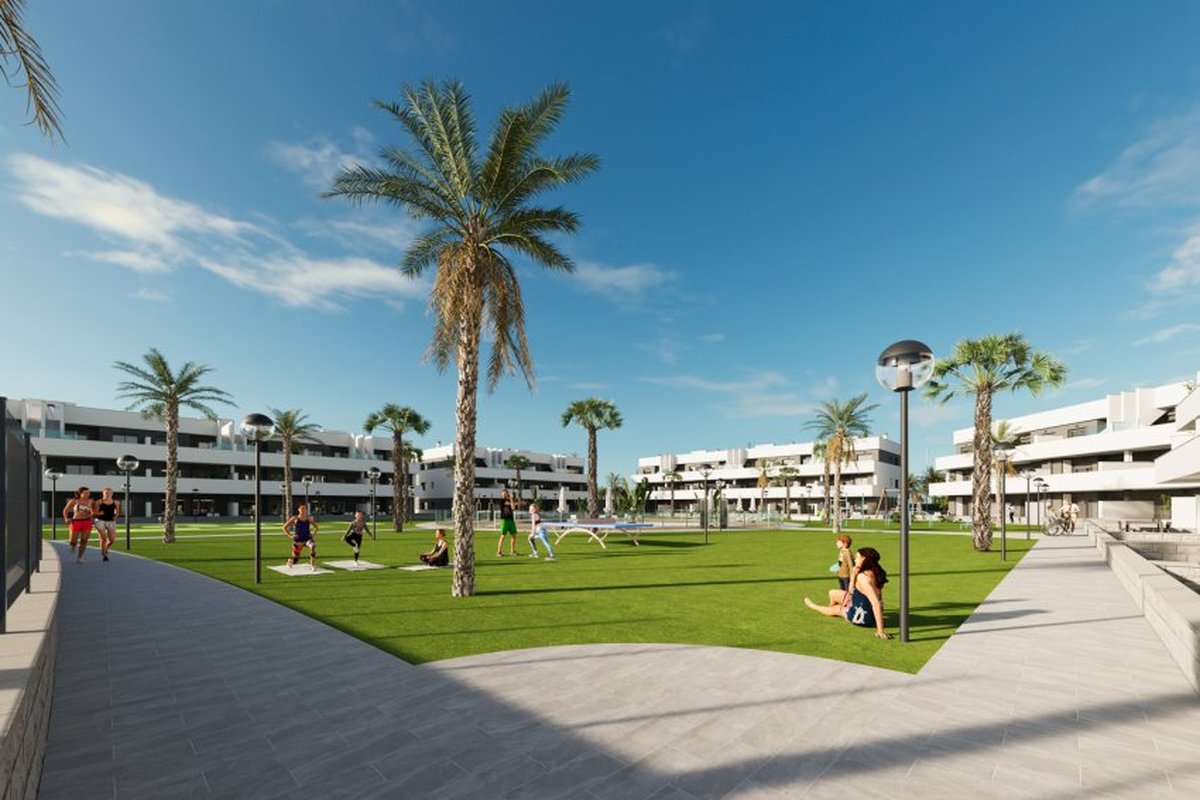 Located in the charming town of Guardamar del Segura, this exclusive residential offer consists of 97 properties carefully designed to offer maximum comfort and style. The housing options include Apartments, ground-floor, and Penthouses, each tailored to different needs and preferences. The proximity to the sea, just 4 km away, allows for the enjoyment of the sea breeze and a privileged natural environment. Additionally, the airport is 38 km away, facilitating access to international connections. All properties are fully furnished and equipped with modern appliances, ensuring a comfortable and hassle-free living experience. Porcelain stoneware floors add a touch of elegance and durability, while electric shutters and video intercom add an additional level of security and convenience. Air conditioning and built-in wardrobes complete the set of features that guarantee a cozy and functional home.OUTDOOR AREASThe exteriors of these properties have been designed to maximize enjoyment of the Mediterranean climate. Each home features a private terrace, ideal for outdoor relaxation or al fresco dining. The ground-floor and Penthouses offer the additional advantage of a private garden, providing a personal green space for leisure and tranquility. Additionally, the Penthouses have a solarium, perfect for sunbathing in total privacy. The community also offers a garage, ensuring a secure space for vehicle parking. The proximity to the sea, just 3.5 km away, allows for stunning views and quick access to local beaches, making this location ideal for sea lovers.INDOOR AREASThe interiors of these homes have been meticulously designed to offer a modern and cozy environment. With options of 2 and 3 bedrooms, and 2 bathrooms, each property is crafted to meet the needs of families of different sizes. The spaces are intelligently distributed to maximize functionality and comfort. The inclusion of air conditioning ensures a pleasant climate year-round, while built-in wardrobes provide efficient and tidy storage. The kitchen, equipped with state-of-the-art appliances, facilitates meal preparation and entertaining. Porcelain stoneware floors not only add an aesthetic touch but are also easy to maintain, ensuring the home remains immaculate with minimal effort.COMMON AREASThe community offers a variety of common areas designed for the enjoyment of all residents. Among them is a communal pool, ideal for cooling off during hot summer days. Sports enthusiasts can take advantage of the communal gym, equipped with everything needed to maintain an active lifestyle. For the little ones, there is a playground where they can play and socialize in a safe environment. The landscaped areas provide a tranquil space for walking or simply relaxing outdoors. Additionally, the community features a mini golf, offering a fun activity for all ages. The communal garage and parking ensure there is always ample space for residents' and visitors' vehicles.GUARDAMAR DEL SEGURAGuardamar del Segura, on the Costa Blanca, stands out for its extensive fine sandy beaches and its natural environment. Its beaches, such as Playa Centro and Playa de la Roqueta, are ideal for relaxation and water sports, while its dunes and pine forests form a protected landscape. Tourism in Guardamar focuses on its beaches and its natural surroundings, ideal for hiking and bird watching in the Parque Natural de las Dunas de Guardamar. The lifestyle in Guardamar is relaxed and close to the sea. Residents and visitors enjoy a quiet life, with a wide gastronomic offer based on seafood and typical dishes of the region. The community values nature and promotes outdoor living. Guardamar del Segura offers a balance between coastal tourism, nature and a serene life by the sea, attracting those seeking tranquillity in a natural environment.