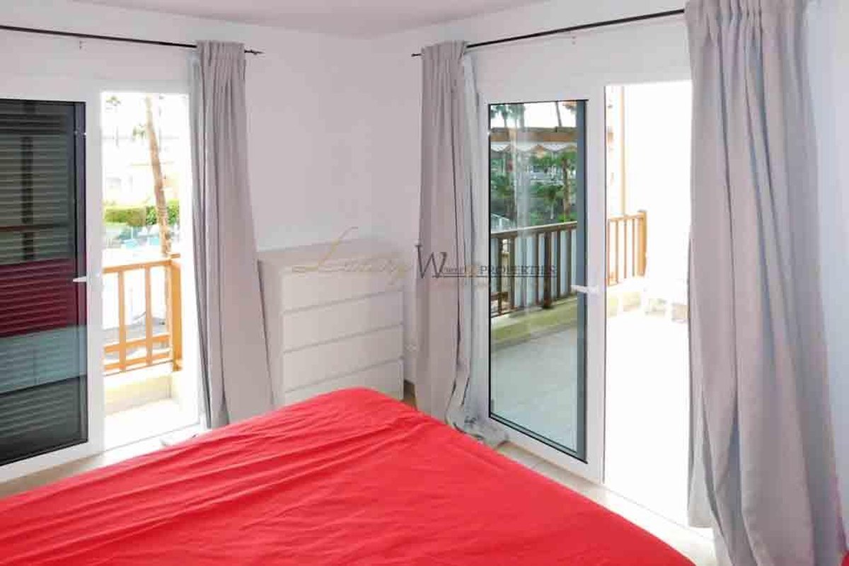 One of the highlights of this property is its spacious terrace with a built-in barbecue, accessible from both the living room and the bedroom, ideal for enjoying the privileged climate of southern Tenerife. From here you can enjoy pleasant views of the communal pool and gardens, as well as partial sea views, while the kitchen offers mountain views.