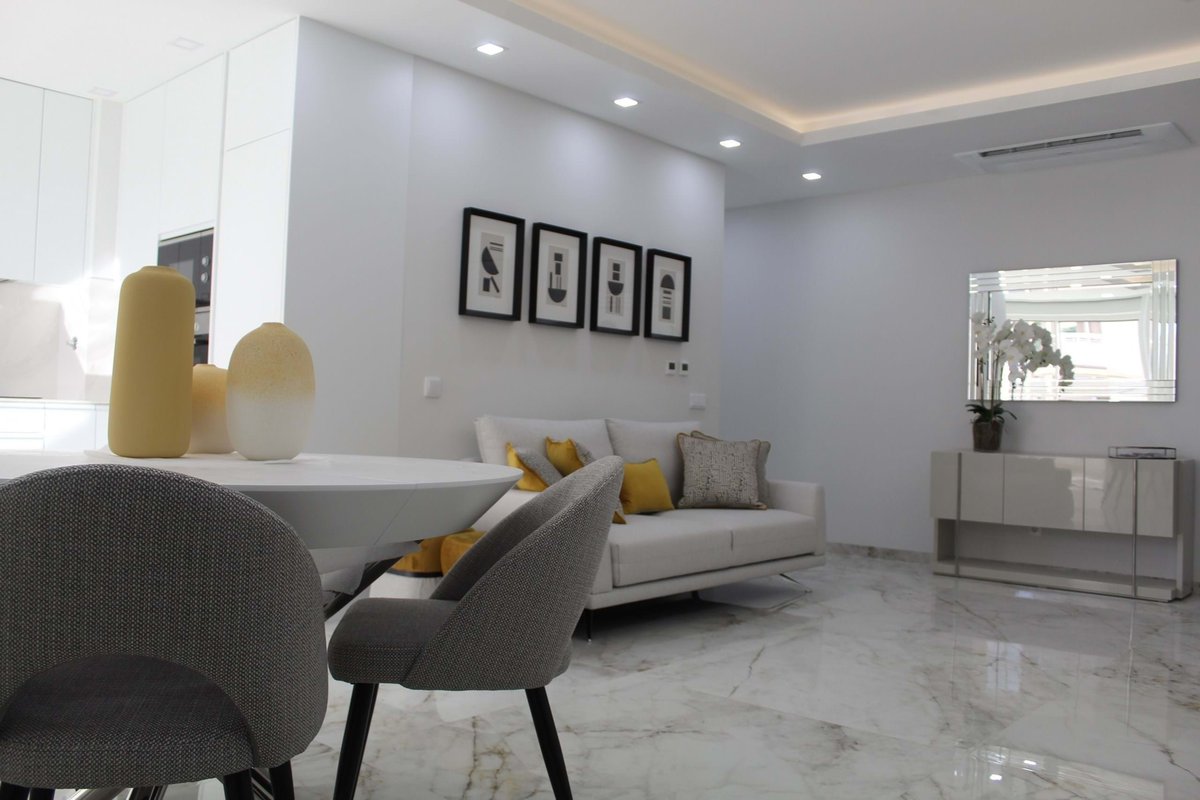 Every apartment offers comfort and sophistication in equal measure, featuring air conditioning, underfloor heating, double-glazed windows, and electric shutters. Energy efficiency takes centre stage, with solar panels for water heating and a state-of-the-art central vacuum system included in every home. Each apartment also boasts two bathrooms, one of which is an elegant en-suite.