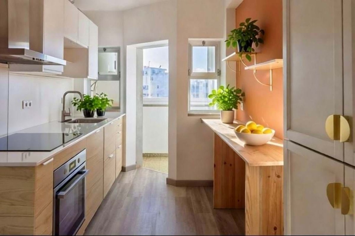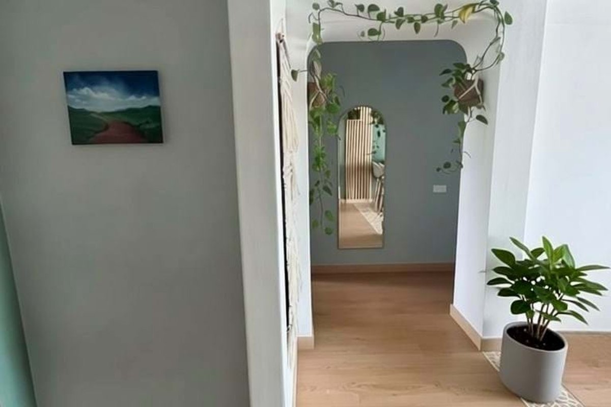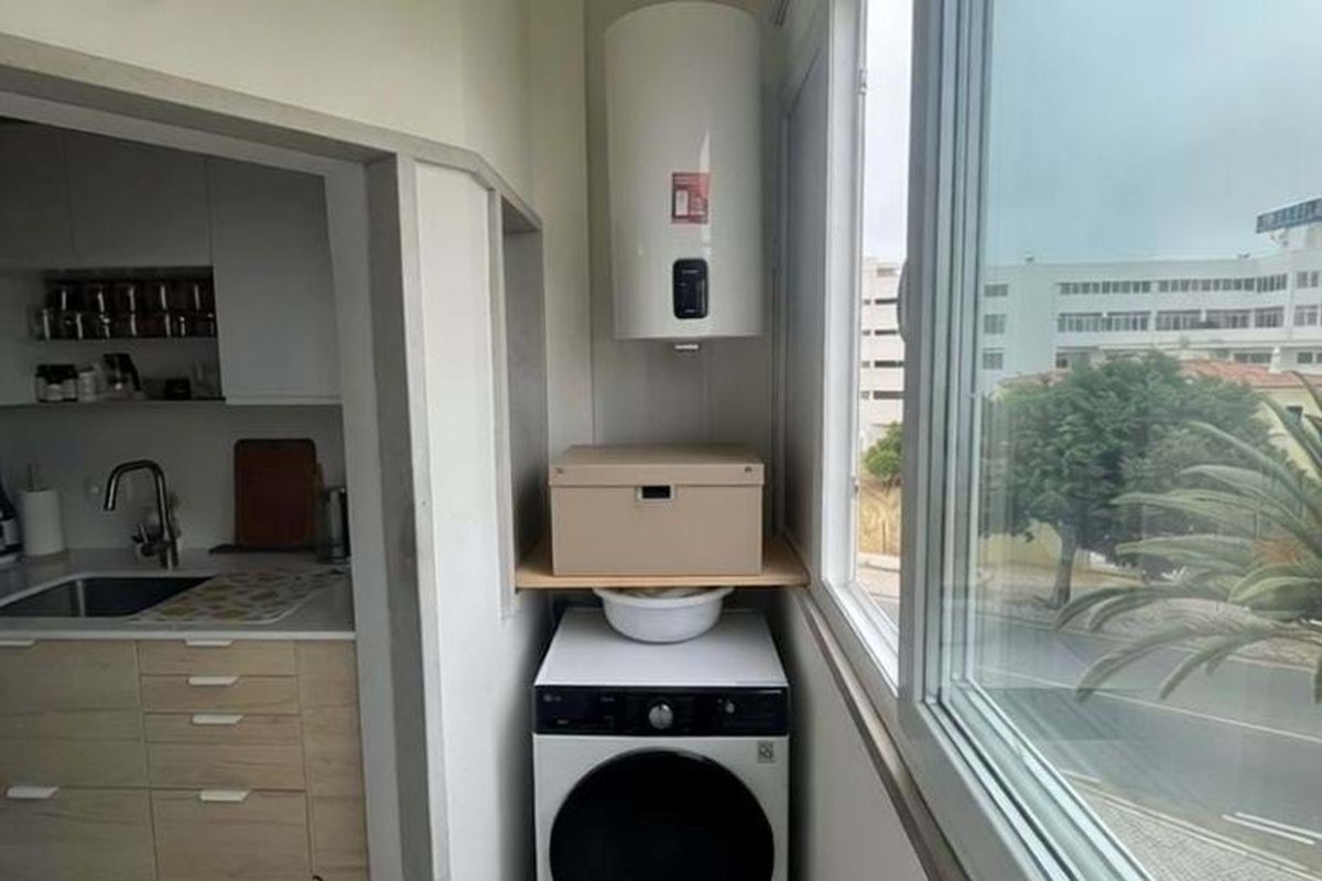 A valuable additional feature is the separate laundry area, efficiently designed to maximize space. It includes a washing machine, fridge-freezer, tiled flooring, and extra storage. From here, there are views of the surrounding cityscape. The apartment is fitted with a large-capacity Ariston water heater, a reliable and well-known brand.