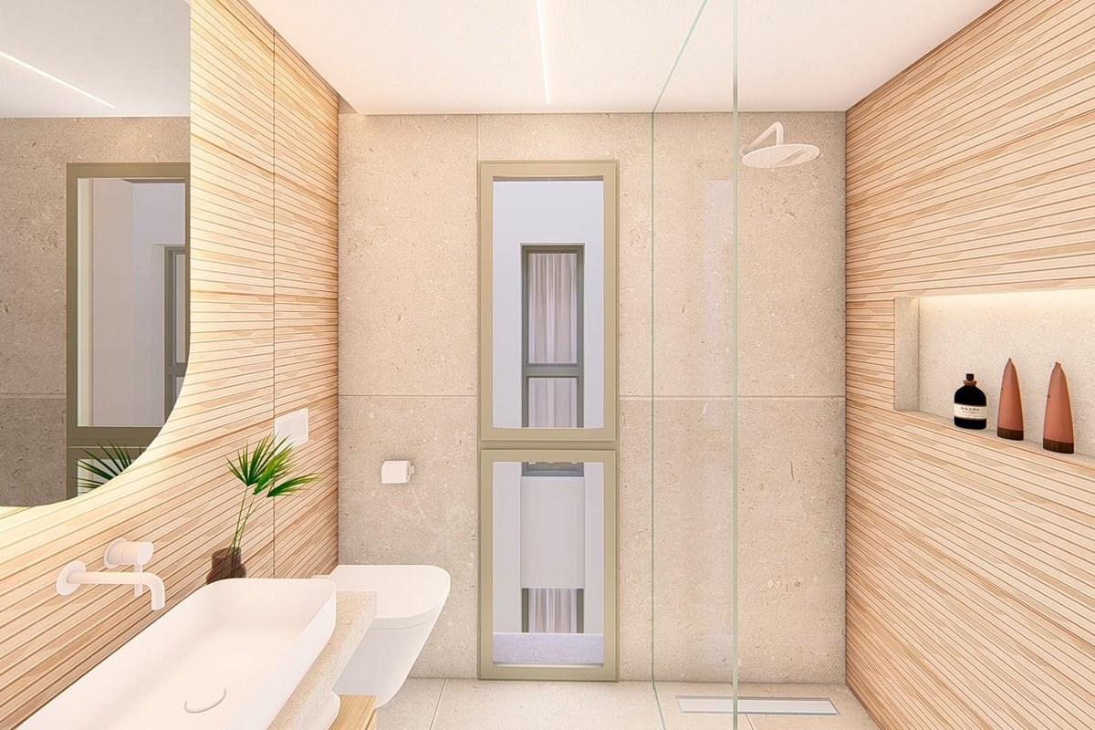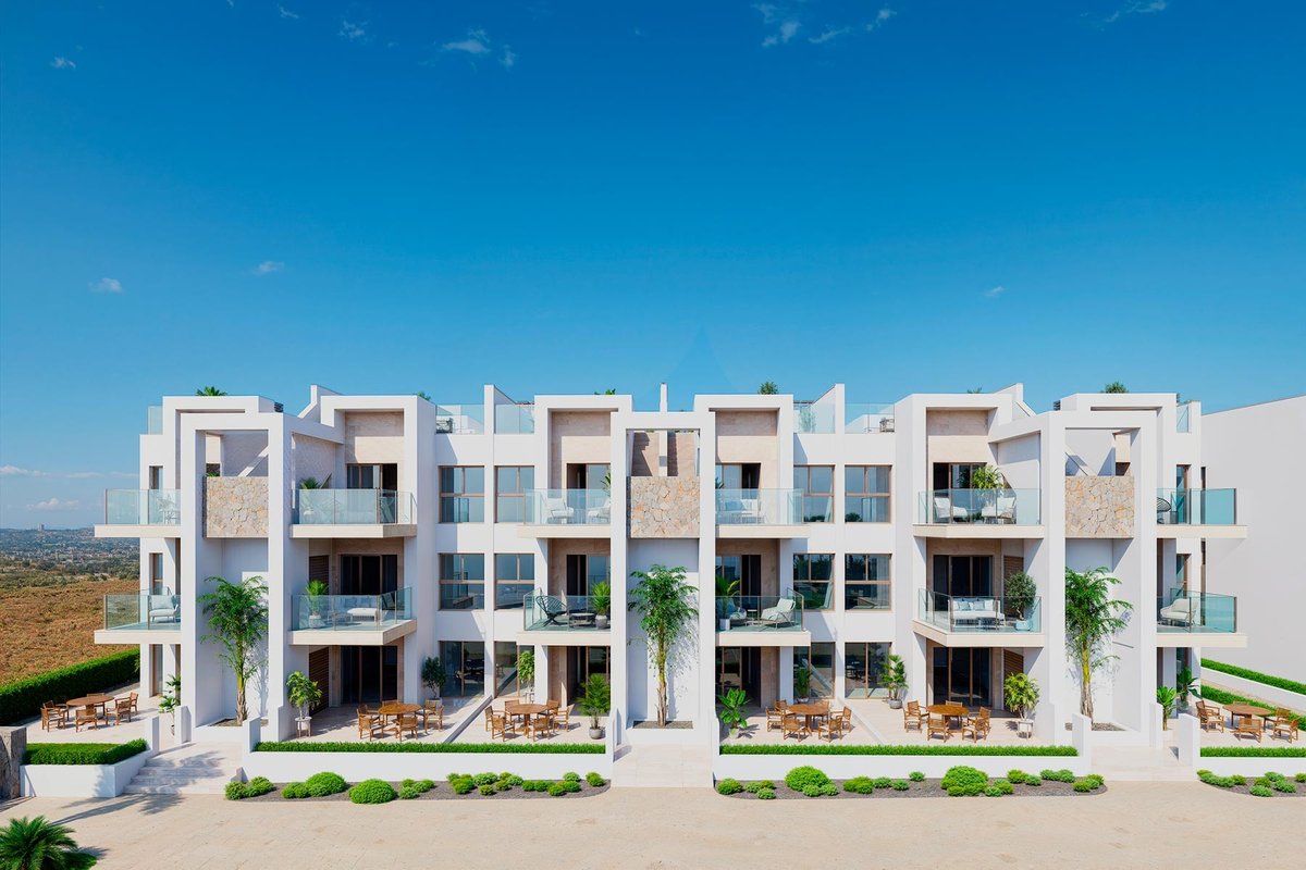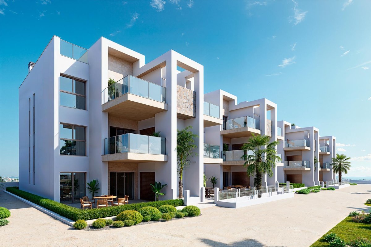 Area Beach VII is an exclusive private residential complex located next to the prestigious La Serena Golf course in Los Alcázares . The complex comprises 66 two- and three-bedroom apartments with two bathrooms , designed with minimalist and contemporary architecture, where quality, natural light, and open spaces are the main features.
