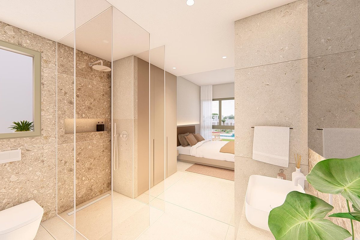 The residential complex is situated on a unique and exceptional plot of land , on the first line of the golf course and very close to all amenities, as well as being just minutes from the best beaches of the Mar Menor . Its modern design blends seamlessly with the surroundings, combining landscaped gardens, spacious open areas, and spectacular swimming pools , creating a tranquil and exclusive atmosphere.