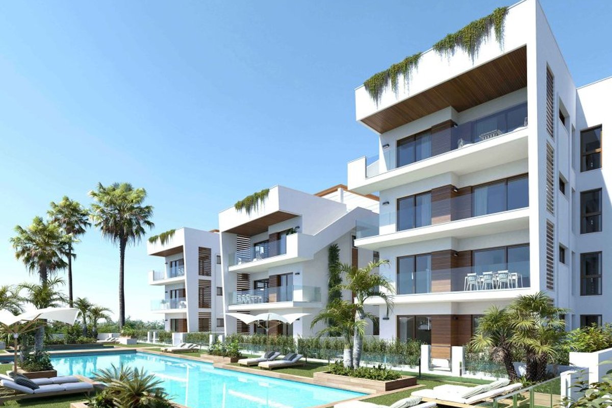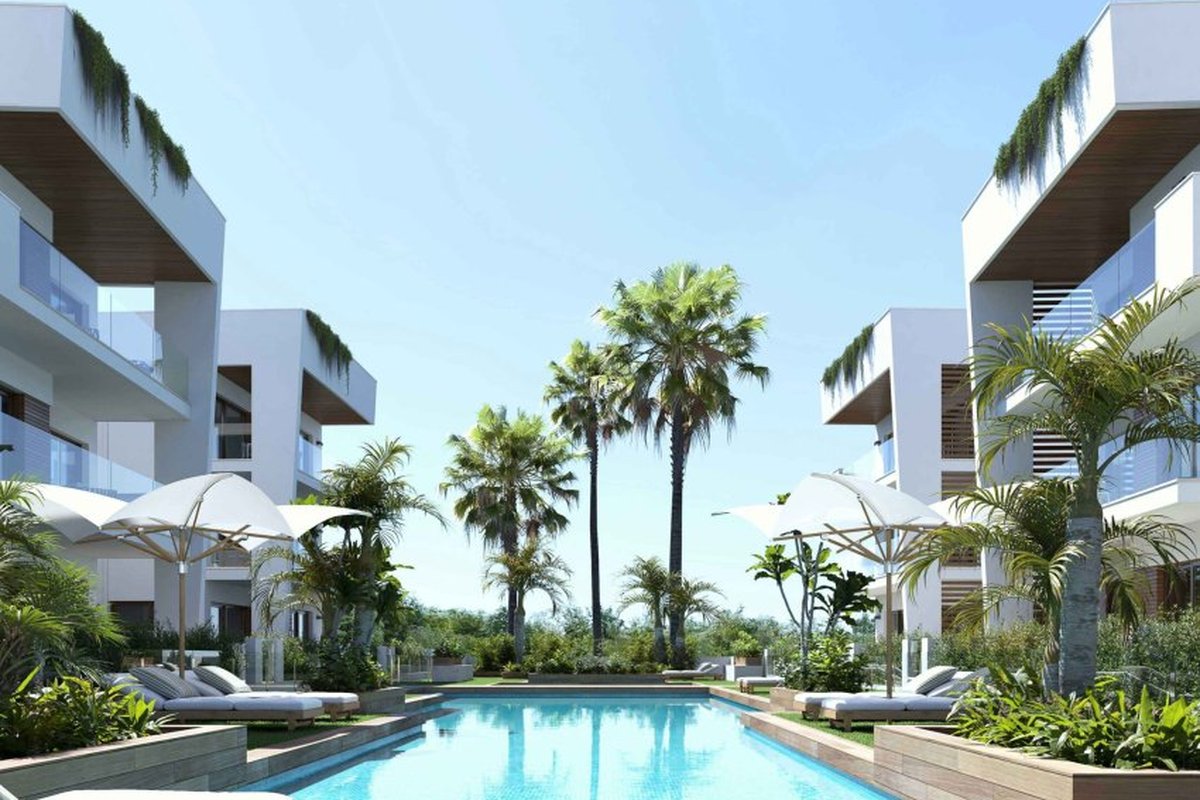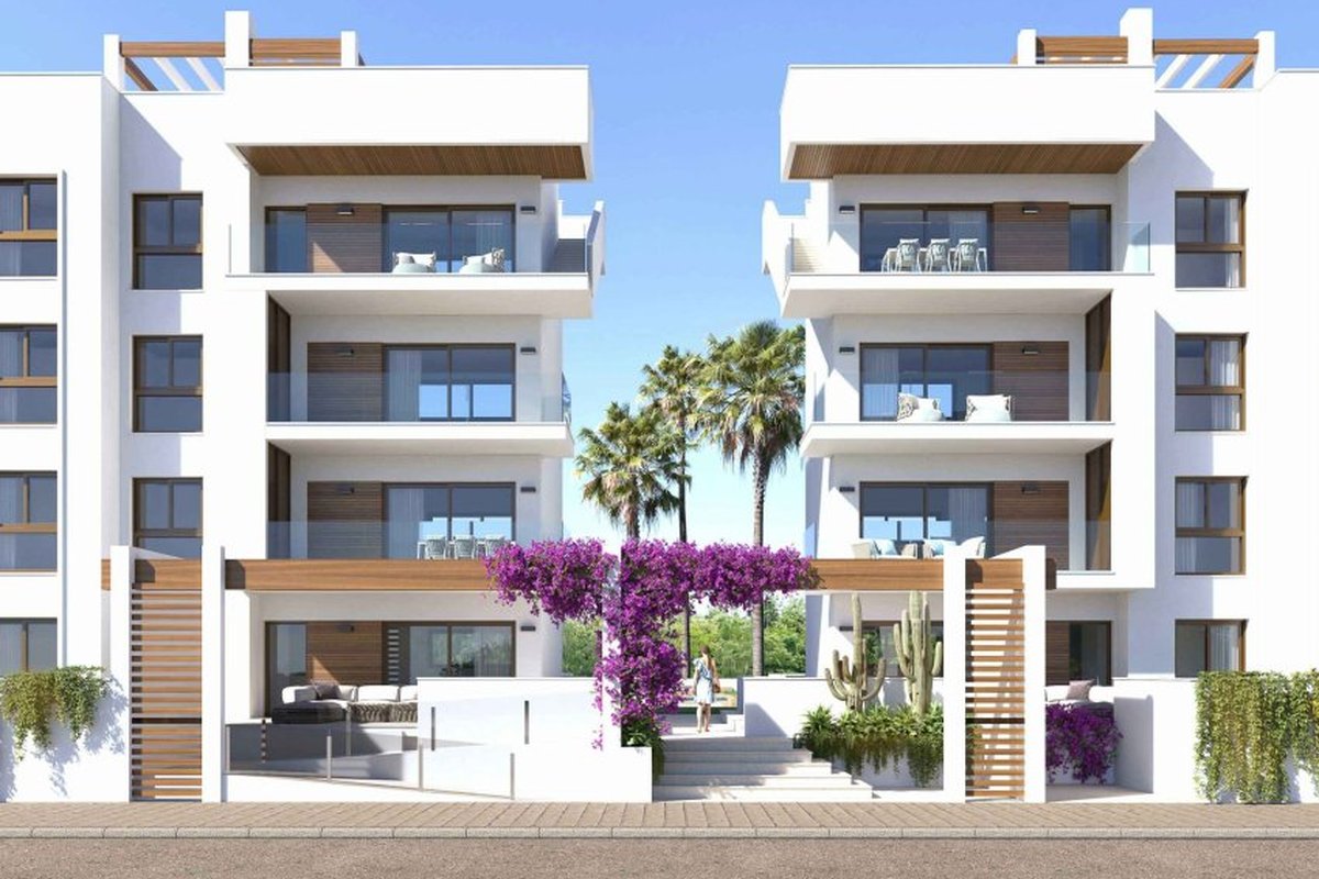 Located in the charming town of Los Alcázares, this exclusive residential complex offers 24 homes designed to enjoy comfort and tranquility. With options including apartments, ground floors, and penthouses, each property is carefully distributed to maximize space and functionality. The homes feature sea views, allowing you to enjoy a privileged setting just 1 km from the coast. Additionally, the proximity to the airport, 39 km away, facilitates access and mobility for those seeking a second residence or a permanent home in a coastal environment.OUTDOOR AREASThe exterior design of the properties in Los Alcázares focuses on integration with the natural environment, offering private gardens and terraces that allow you to enjoy the Mediterranean climate. The ground floors have direct access to gardens, while the penthouses feature private solariums, ideal for relaxing and enjoying panoramic views. All homes are equipped with electric shutters, facilitating control of light and privacy.INDOOR AREASThe homes are equipped with porcelain stoneware floors, adding a modern and elegant touch to each space. The interior layout includes options of 2 and 3 bedrooms, all with built-in wardrobes, and 2 full bathrooms. The pre-installation of air conditioning ensures comfort throughout the year. Additionally, each property has a video intercom system, ensuring security and convenience. The kitchen and living room are designed to offer an open and bright space, ideal for everyday life.COMMON AREASThe residential complex offers a range of common areas that complement the living experience. Residents can enjoy spacious garden areas, perfect for walking or relaxing outdoors. The communal pool is an ideal meeting point for socializing and refreshing during the warmer months. Additionally, the complex has a communal garage and parking areas, ensuring residents' convenience. The communal solarium is another attraction, providing additional space to enjoy the sun and views.LOS ALCÁZARESLos Alcázares, on the Costa Cálida, is known for its long beaches with calm waters and its relaxed atmosphere. This tourist destination offers a wide variety of water and sporting activities, making it an ideal place for lovers of the sea and water sports. Tourism in Los Alcázares focuses on its beaches, such as Playa de Los Narejos, perfect for families and water sports such as windsurfing and kitesurfing. In addition, its promenade is a meeting point to enjoy the local gastronomy and the coastal atmosphere. The lifestyle in Los Alcazares is tranquil and sea-oriented. Residents and visitors enjoy a relaxed lifestyle, with a wide gastronomic offer highlighting seafood and Mediterranean cuisine. The community values the proximity to the sea and the outdoor life, making Los Alcázares an attractive destination for those seeking a tranquil coastal life.