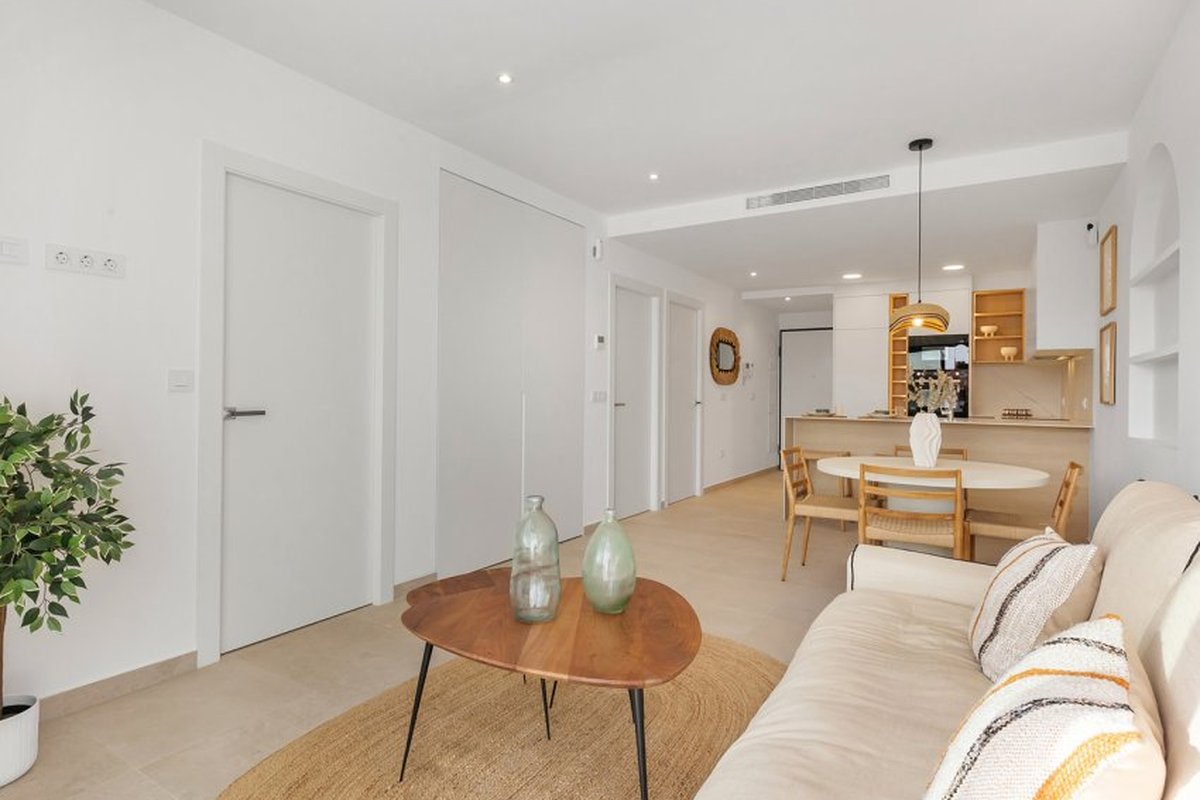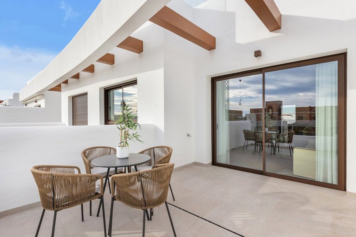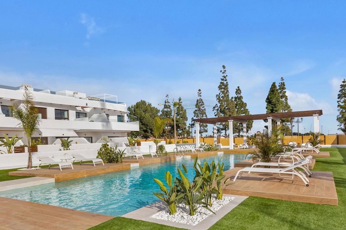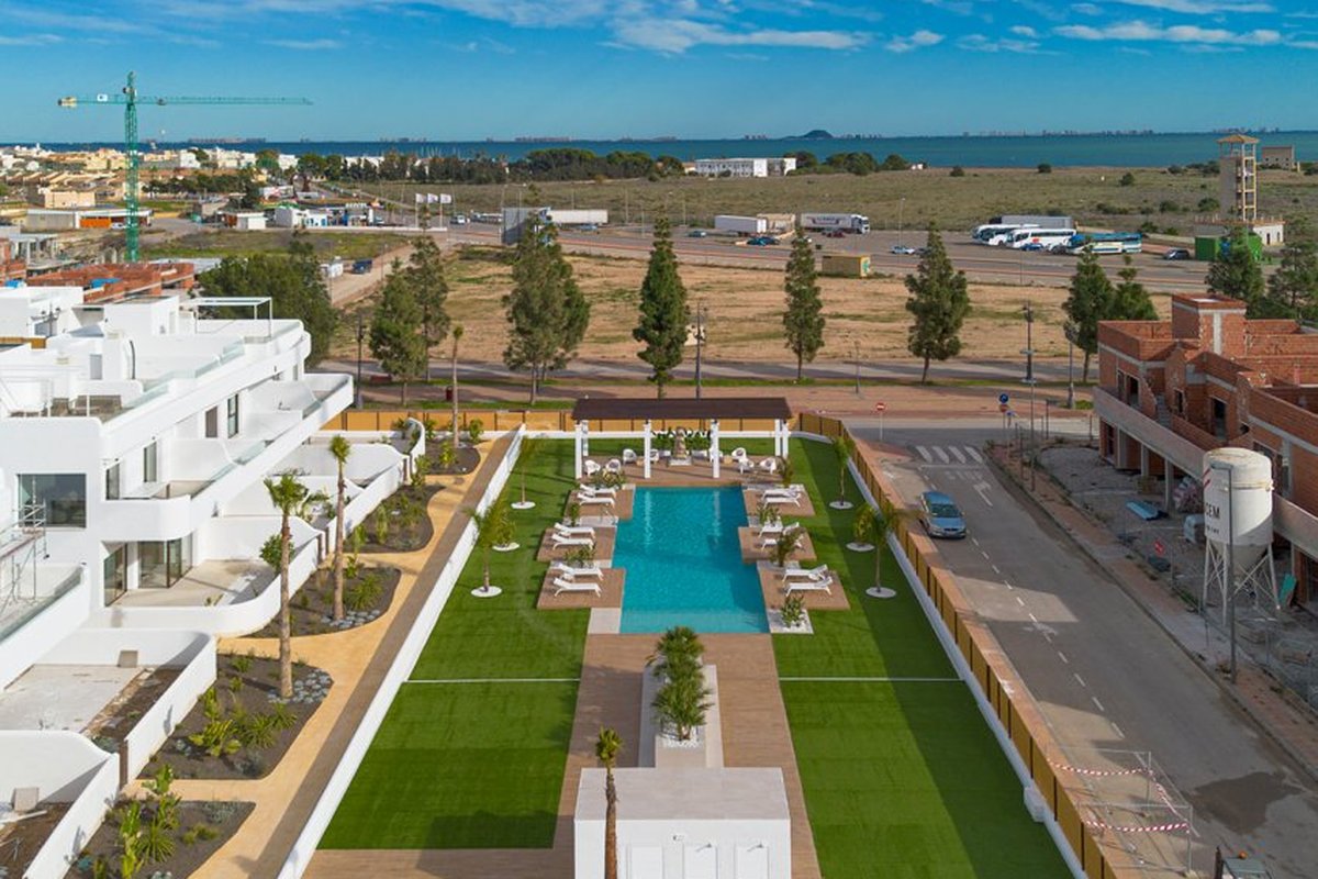 Located in the charming town of Los Alcázares, this residential complex offers a selection of 22 homes including apartments and penthouses. Designed for those seeking a comfortable and modern lifestyle, each property is carefully planned to maximize comfort and functionality. Los Alcázares is known for its proximity to the sea, with the beach just 1 km away, allowing for stunning views and quick access to the coast. Additionally, golf enthusiasts will find a course at the same distance, making this location ideal for fans of the sport. The nearest airport is 44 km away, facilitating international connections.OUTDOOR AREASThe exteriors of this residential complex are designed to complement the natural surroundings of Los Alcázares. The homes feature private terraces, perfect for enjoying the Mediterranean climate and surrounding views. Additionally, some properties offer the option of a solarium, providing extra outdoor space for relaxation or socializing. The communal gardens are carefully maintained, offering a green space where residents can enjoy the tranquility and beauty of the landscape. The proximity to the sea, just 1 km away, allows for coastal walks and water activities.INDOOR AREASInside, the homes are equipped with modern features that ensure comfort and style. The apartments and penthouses offer options of 2 or 3 bedrooms and 2 or 3 bathrooms, catering to different family needs. Porcelain tile floors add a touch of elegance and are easy to maintain. The kitchens are equipped with appliances, making daily life easier. Built-in wardrobes provide efficient storage, while the pre-installation of air conditioning ensures a pleasant environment year-round. Additionally, there is the option to purchase a garage, adding convenience and security.COMMON AREASThe common areas of the complex are designed to foster a sense of community and offer spaces for recreation and relaxation. Residents can enjoy a communal pool, ideal for cooling off during warm summer days. The communal gardens offer a green and serene environment, perfect for walking or simply relaxing outdoors.LOS ALCÁZARESLos Alcázares, on the Costa Cálida, is known for its long beaches with calm waters and its relaxed atmosphere. This tourist destination offers a wide variety of water and sporting activities, making it an ideal place for lovers of the sea and water sports. Tourism in Los Alcázares focuses on its beaches, such as Playa de Los Narejos, perfect for families and water sports such as windsurfing and kitesurfing. In addition, its promenade is a meeting point to enjoy the local gastronomy and the coastal atmosphere. The lifestyle in Los Alcazares is tranquil and sea-oriented. Residents and visitors enjoy a relaxed lifestyle, with a wide gastronomic offer highlighting seafood and Mediterranean cuisine. The community values the proximity to the sea and the outdoor life, making Los Alcázares an attractive destination for those seeking a tranquil coastal life.
