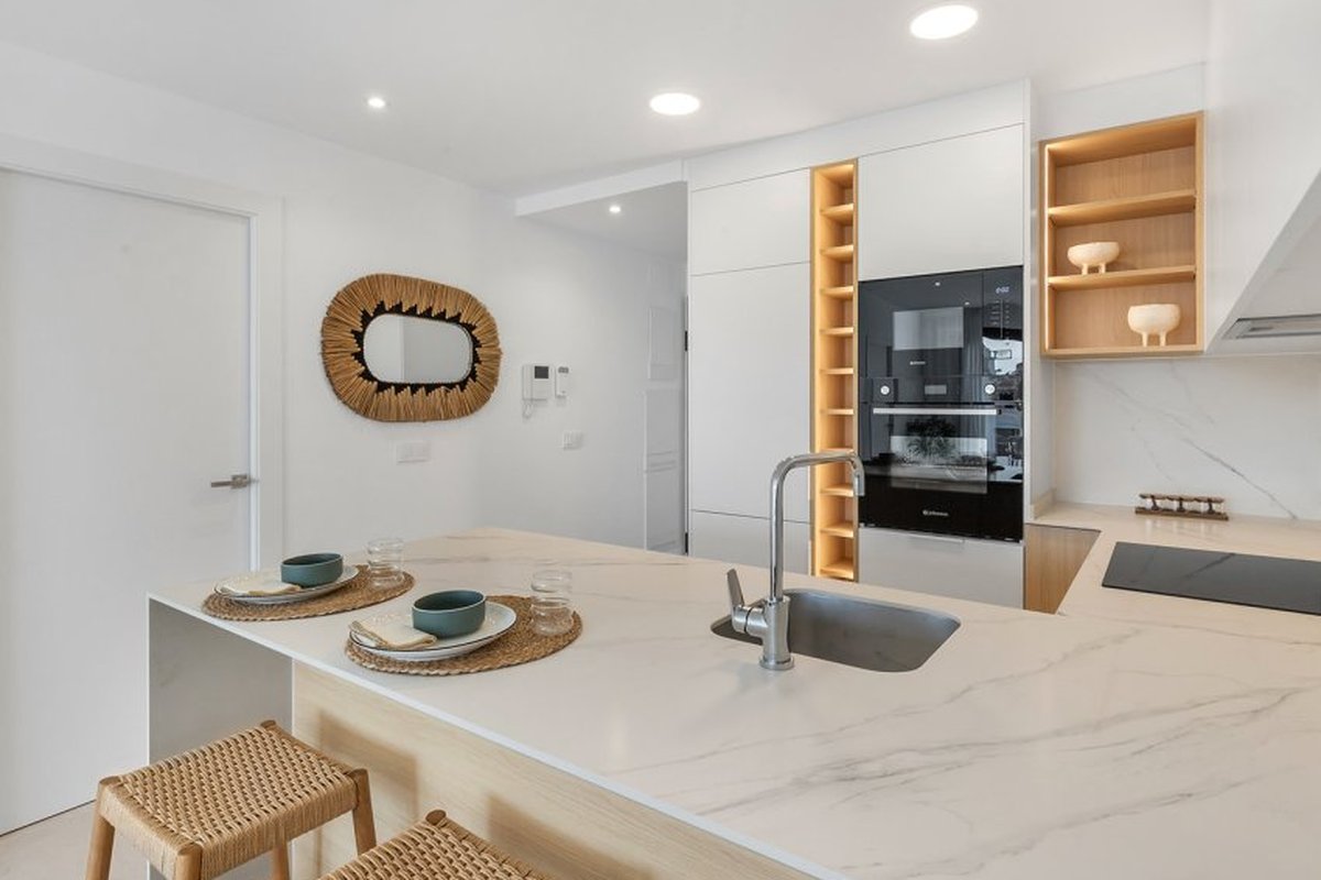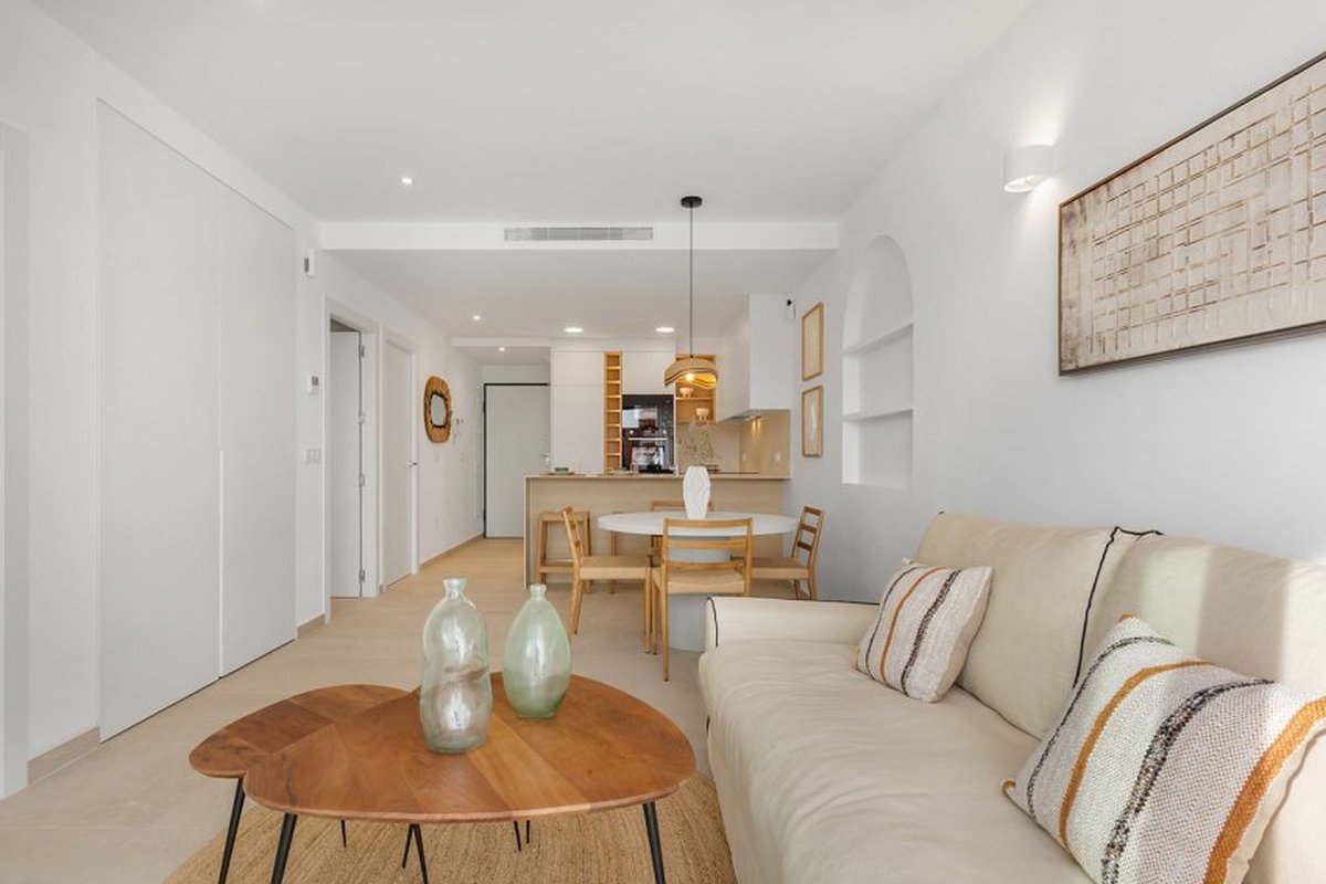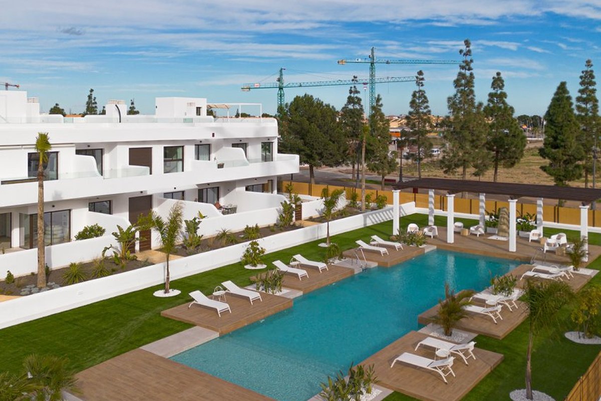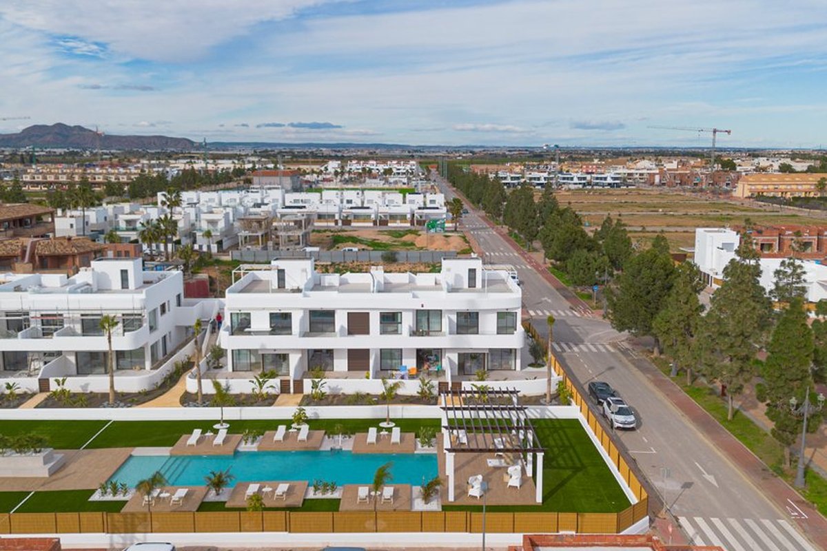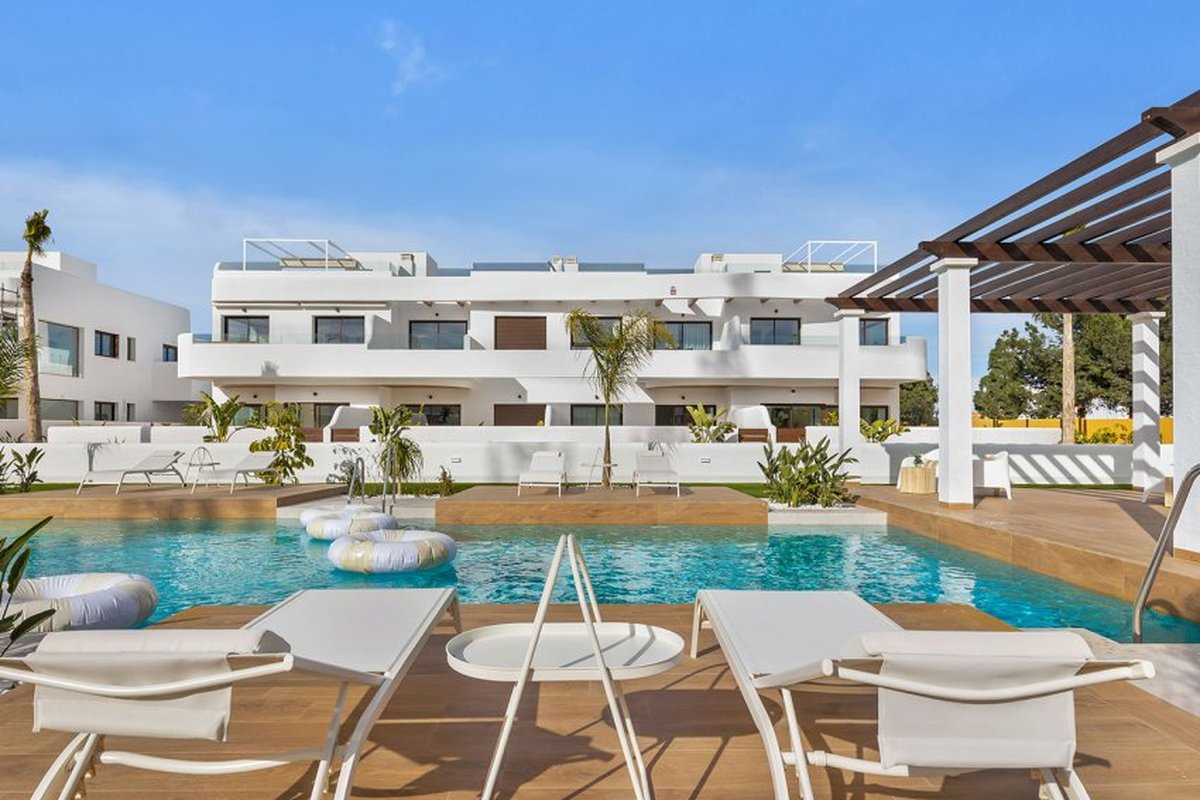 Located in the charming town of Los Alcázares, this residential complex offers a selection of 22 homes including apartments and penthouses. Designed for those seeking a comfortable and modern lifestyle, each property is carefully planned to maximize comfort and functionality. Los Alcázares is known for its proximity to the sea, with the beach just 1 km away, allowing for stunning views and quick access to the coast. Additionally, golf enthusiasts will find a course at the same distance, making this location ideal for fans of the sport. The nearest airport is 44 km away, facilitating international connections.OUTDOOR AREASThe exteriors of this residential complex are designed to complement the natural surroundings of Los Alcázares. The homes feature private terraces, perfect for enjoying the Mediterranean climate and surrounding views. Additionally, some properties offer the option of a solarium, providing extra outdoor space for relaxation or socializing. The communal gardens are carefully maintained, offering a green space where residents can enjoy the tranquility and beauty of the landscape. The proximity to the sea, just 1 km away, allows for coastal walks and water activities.INDOOR AREASInside, the homes are equipped with modern features that ensure comfort and style. The apartments and penthouses offer options of 2 or 3 bedrooms and 2 or 3 bathrooms, catering to different family needs. Porcelain tile floors add a touch of elegance and are easy to maintain. The kitchens are equipped with appliances, making daily life easier. Built-in wardrobes provide efficient storage, while the pre-installation of air conditioning ensures a pleasant environment year-round. Additionally, there is the option to purchase a garage, adding convenience and security.COMMON AREASThe common areas of the complex are designed to foster a sense of community and offer spaces for recreation and relaxation. Residents can enjoy a communal pool, ideal for cooling off during warm summer days. The communal gardens offer a green and serene environment, perfect for walking or simply relaxing outdoors.LOS ALCÁZARESLos Alcázares, on the Costa Cálida, is known for its long beaches with calm waters and its relaxed atmosphere. This tourist destination offers a wide variety of water and sporting activities, making it an ideal place for lovers of the sea and water sports. Tourism in Los Alcázares focuses on its beaches, such as Playa de Los Narejos, perfect for families and water sports such as windsurfing and kitesurfing. In addition, its promenade is a meeting point to enjoy the local gastronomy and the coastal atmosphere. The lifestyle in Los Alcazares is tranquil and sea-oriented. Residents and visitors enjoy a relaxed lifestyle, with a wide gastronomic offer highlighting seafood and Mediterranean cuisine. The community values the proximity to the sea and the outdoor life, making Los Alcázares an attractive destination for those seeking a tranquil coastal life.