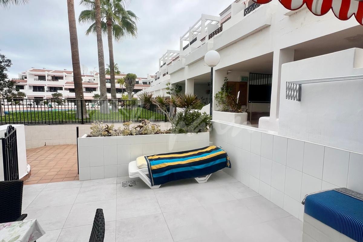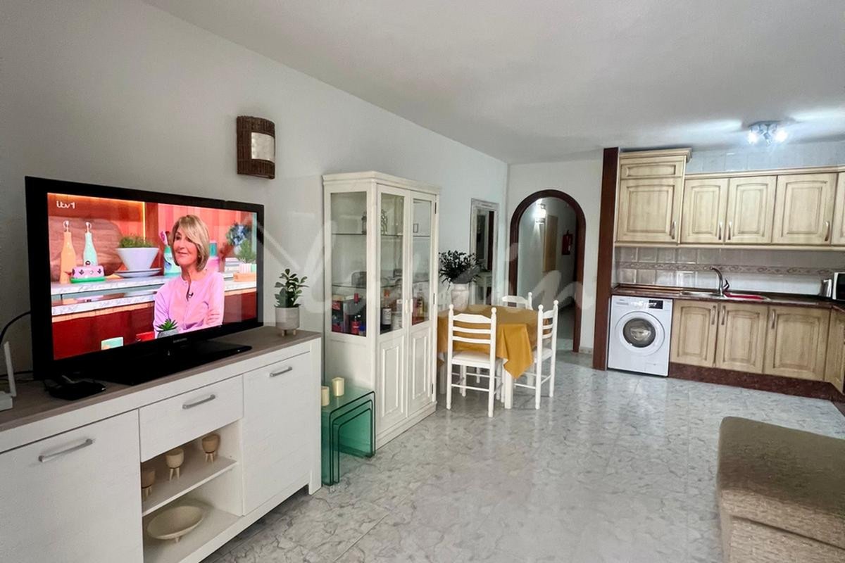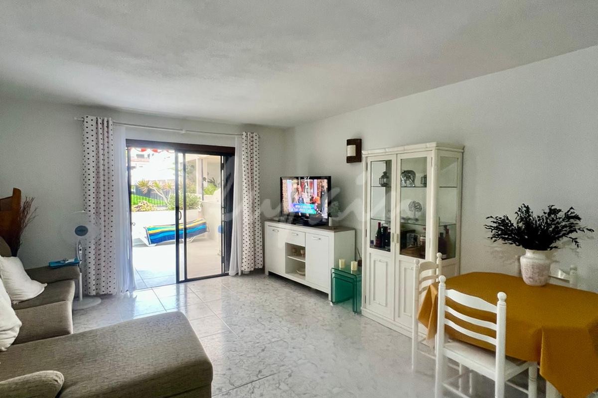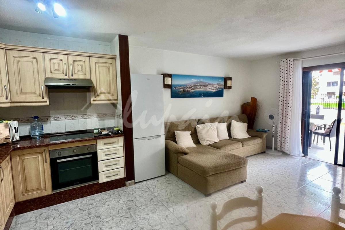 A well-presented apartment located within the popular Victoria Court complex in Los Cristianos. The property comprises one bedroom with fitted wardrobes and a bathroom, along with a fully fitted and equipped American-style kitchen. The open-plan lounge and dining area features patio doors that open onto a private terrace enjoying pleasant pool and garden views.