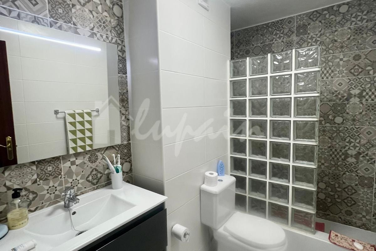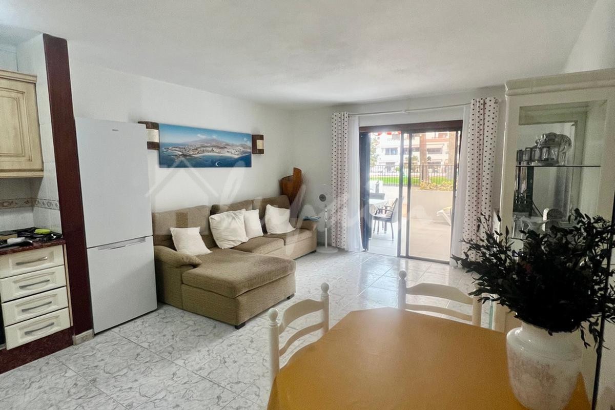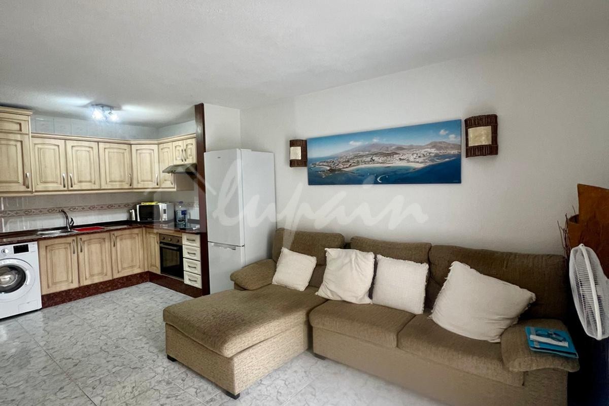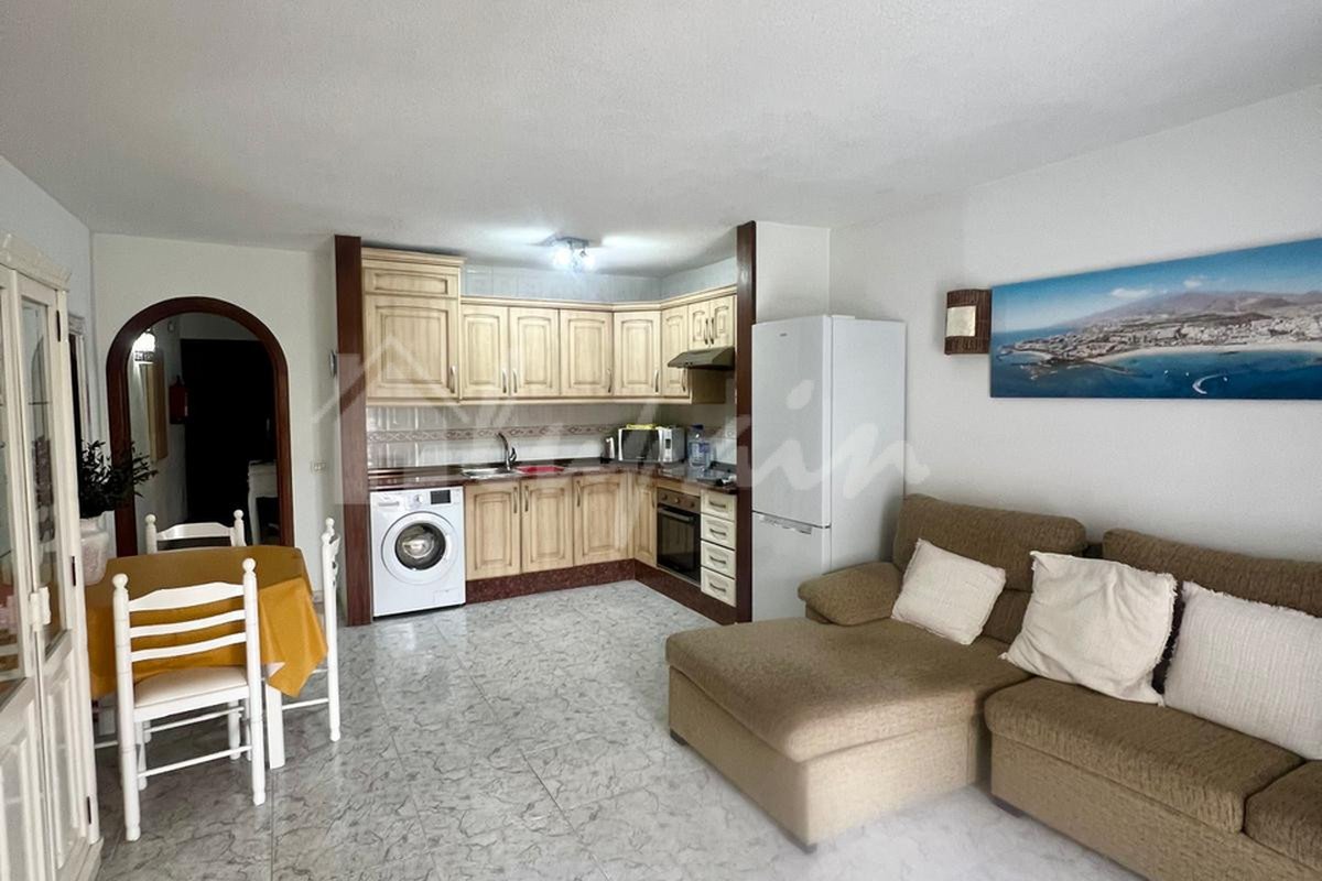 A well-presented apartment located within the popular Victoria Court complex in Los Cristianos. The property comprises one bedroom with fitted wardrobes and a bathroom, along with a fully fitted and equipped American-style kitchen. The open-plan lounge and dining area features patio doors that open onto a private terrace enjoying pleasant pool and garden views.