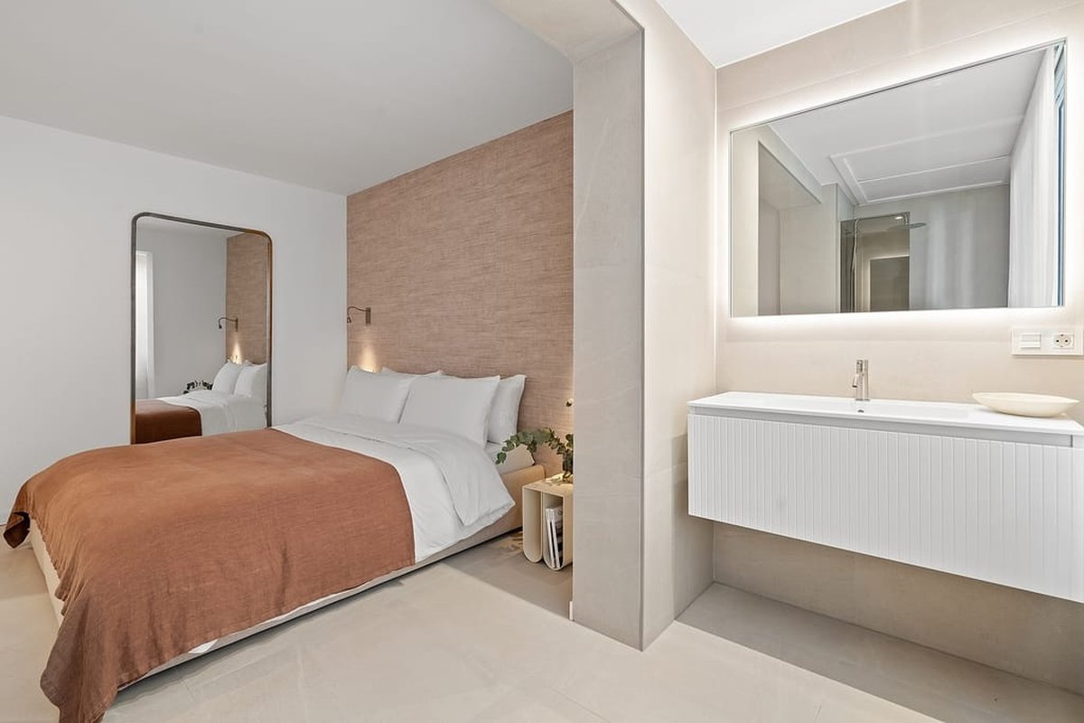 The apartment is beautifully renovated, offering a bright, south-facing orientation that bathes the interiors in natural light throughout the day. The open-plan layout connects a sleek modern kitchen with a spacious living area that opens onto a large terrace — perfect for al fresco dining and entertaining. With three generous bedrooms and three elegant bathrooms, this home combines modern design with a warm, welcoming feel. High-quality finishes, built-in wardrobes, and seamless indoor-outdoor flow make it ideal for both permanent living and luxury holidays.