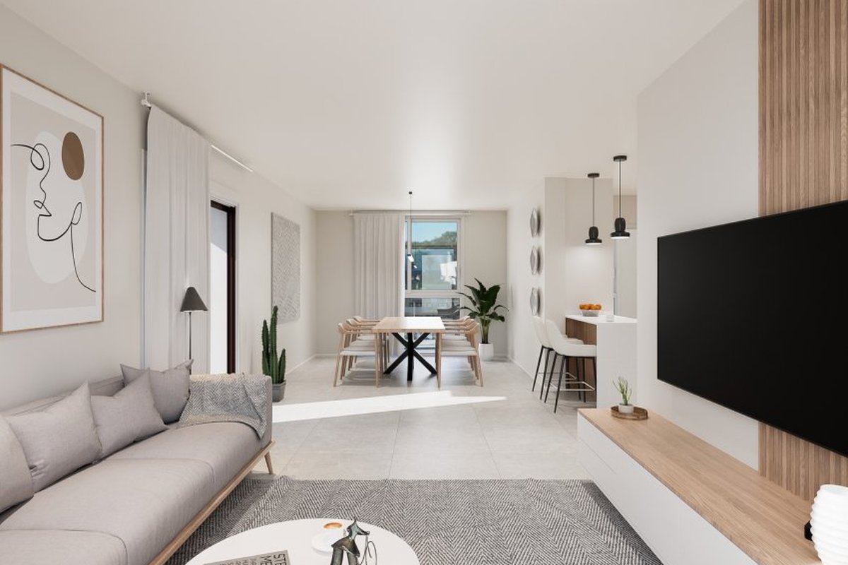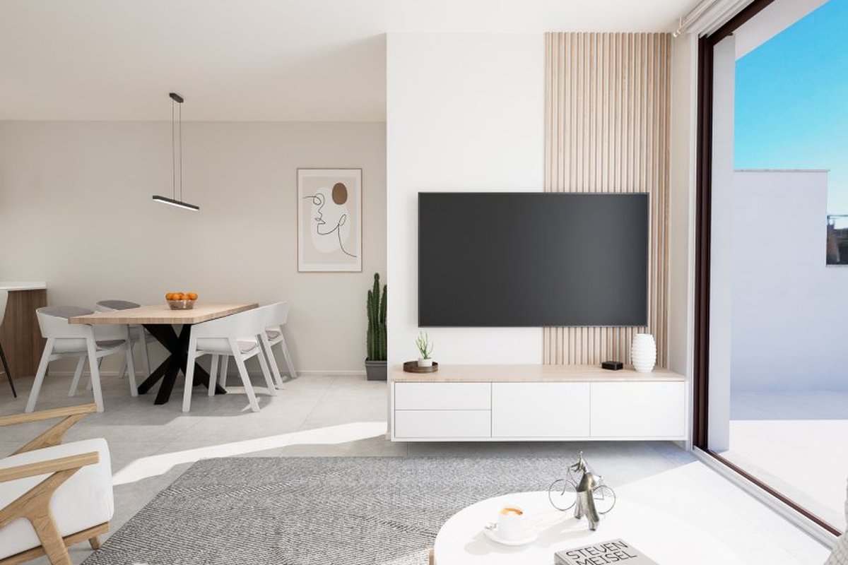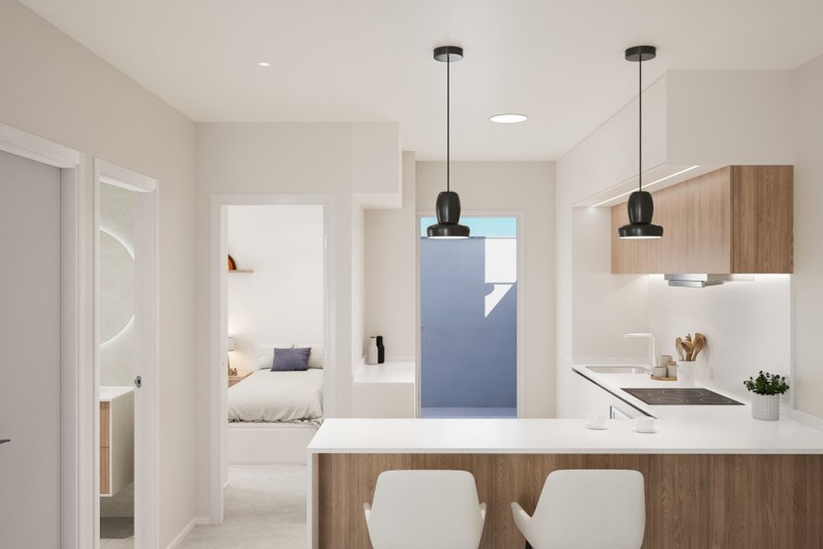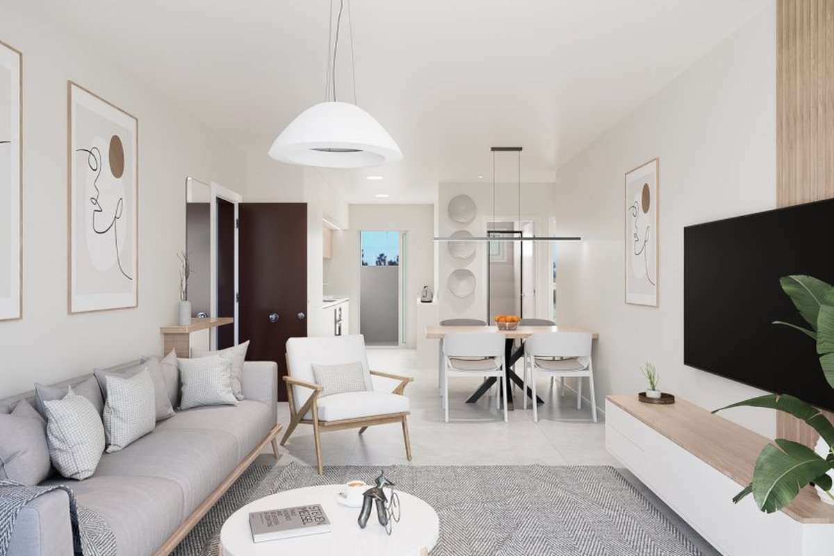 Located in the charming town of Pilar de la Horadada, this exclusive residential complex offers a unique living experience on the front line of the sea. With a total of 25 properties, residents can enjoy stunning sea views from the comfort of their home. The offer includes a variety of typologies that cater to different needs and lifestyles, such as apartments, penthouses, townhouses, and bungalows on the ground and upper floors. All homes are designed to maximize comfort and functionality, with options of 2 or 3 bedrooms and 2 bathrooms, ideal for families or couples seeking additional space. The proximity to the sea, just 1 km away, and the airport, 15 km away, ensures excellent connectivity and access to essential services.OUTDOOR AREASThe properties feature exterior characteristics that enhance their appeal and functionality. Each home has a private terrace, perfect for enjoying the Mediterranean climate and sea views. Additionally, some typologies include a solarium, providing additional outdoor space for relaxation or socializing. Private gardens are an available option in certain homes, offering a personal oasis of tranquility. For those seeking a touch of luxury, some properties feature a private pool, ideal for cooling off on hot days. The exterior design is complemented by electric shutters, which add not only convenience but also a modern and elegant touch.INDOOR AREASThe interiors of the homes are carefully designed to offer maximum comfort and style. Porcelain stoneware floors provide an elegant and durable finish, while air conditioning ensures a pleasant environment year-round. The kitchens are equipped with modern appliances, making daily life easier. Built-in wardrobes in the bedrooms provide efficient and organized storage. Every detail has been considered to create a cozy and functional space where quality and design come together to offer an exceptional home.COMMON AREASThe common areas of the residential are designed to promote an active and social lifestyle. Residents can enjoy spacious garden areas, perfect for walking or relaxing outdoors. The communal pool offers an ideal space for swimming and socializing with neighbors and friends. Additionally, the residential features a communal garage and parking options, ensuring convenience and security for all residents.PILAR DE LA HORADADAPilar de la Horadada, on the Costa Blanca, is a coastal town with fine sandy beaches and a tranquil atmosphere. Its coastline, such as Playa de Mil Palmeras, attracts visitors in search of sun and sea, making it a popular tourist destination in summer. Tourism in Pilar de la Horadada focuses on its beaches and water activities, such as snorkelling and scuba diving. Its proximity to areas of interest such as the Salinas de San Pedro Natural Park adds value to its tourist offer. The lifestyle in Pilar de la Horadada is relaxed and sea-oriented. Residents enjoy a quiet life, with a wide gastronomic offer based on fresh fish and Mediterranean dishes. The community values the proximity to the sea and local traditions. Pilar de la Horadada offers a coastal and tranquil atmosphere for those seeking a relaxed life by the Mediterranean Sea on the Costa Blanca.