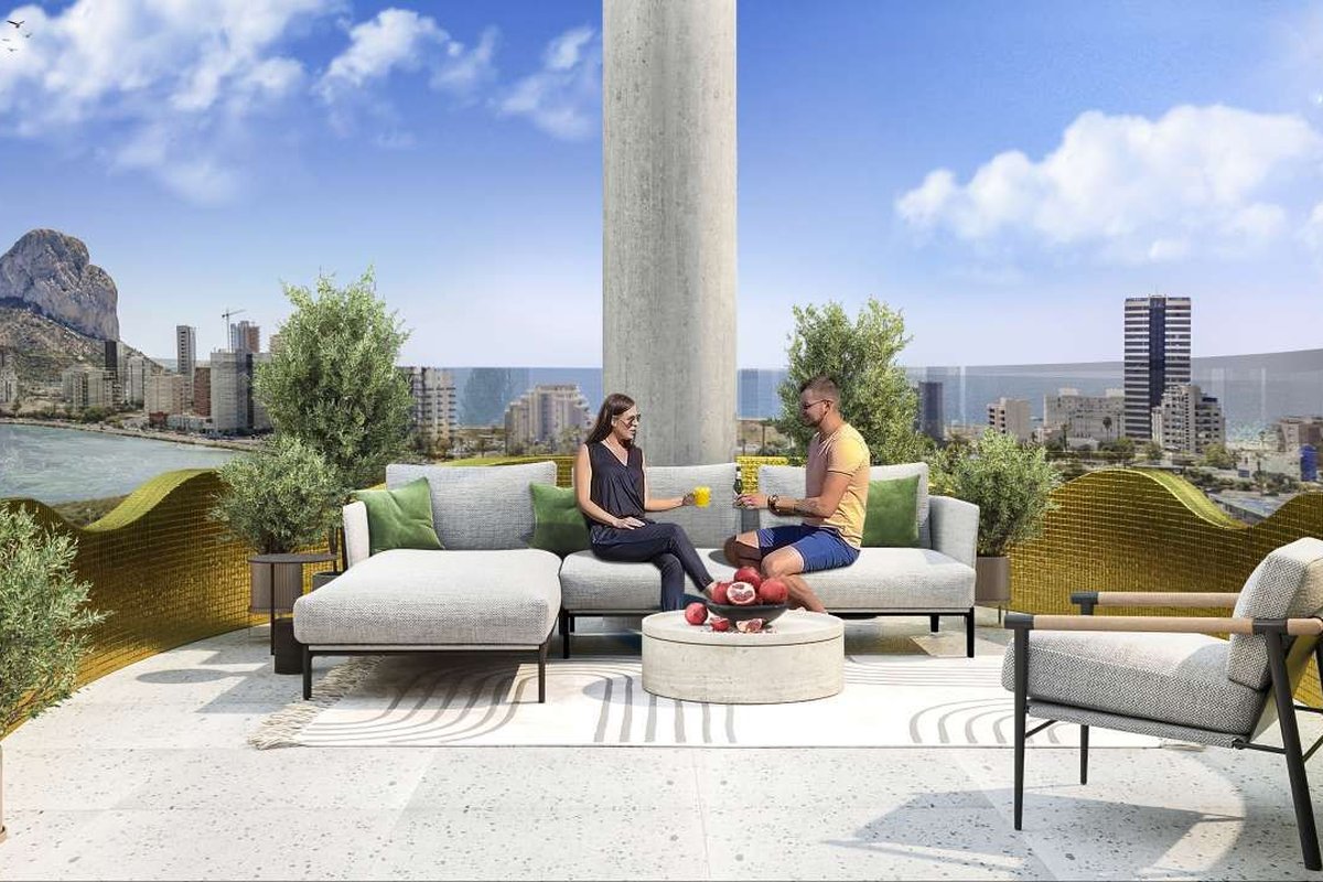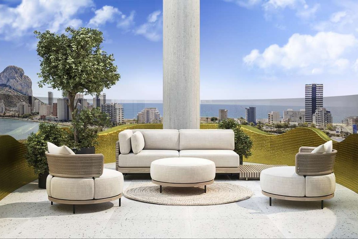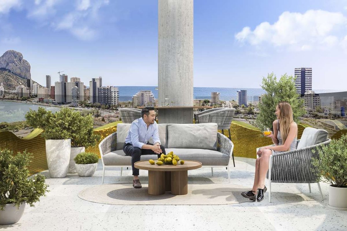 Each home has a large terrace, a circular view of all the best of Calpe: Arenal beach, Fossa beach, Las Salinas lagoon, and of course the Peñón de Ifach.br br Every morning, every afternoon, ... living integrated into the sky of Calpe... Only a plot of land for school use separates you from Las Salinas.br br It has a swimming pool, paddle tennis, gym, calisthenics area and children`s games in spacious common areas. br br And its exceptional aesthetics shines from an axis, a trunk, with ceramic cladding in white and gold, marble textures. From which sprout, like leaves, terraces enamelled in a striking luminous and brave gold.br br ~Don`t miss this unique opportunity and contact us.~