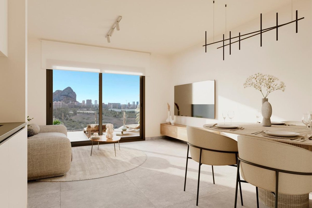Discover this brand-new residential complex where tranquility, comfort and modern luxury come together. Located in a green and serene environment yet within walking distance of all amenities and the vibrant life of Calpe. Waking up with views of the iconic Peñón de Ifach while breathing in fresh sea air? At Aqua Residential this is daily reality.~~The apartments are designed with an eye for space light quality every detail has been carefully thought out from functional layout stylish finishing touches open living area seamlessly connects to a modern kitchen featuring compact quartz countertops stainless steel sink chrome faucet built-in appliances including oven induction cooktop extractor microwave refrigerator dishwasher more.~~For those who value comfort active lifestyle it’s perfect place Enjoy community pool children’s swimming pool playground yoga zone bio-salt room Additionally there bicycle storage equipped gym Thanks to its central location you’ll find sandy beaches cozy restaurants shops cultural hotspots nearby dairy best part ~~Every property comes private garage storage rare advantage region!~~2 bedroom from 344.500 euro.~3 bedroom from 377.500 euro~