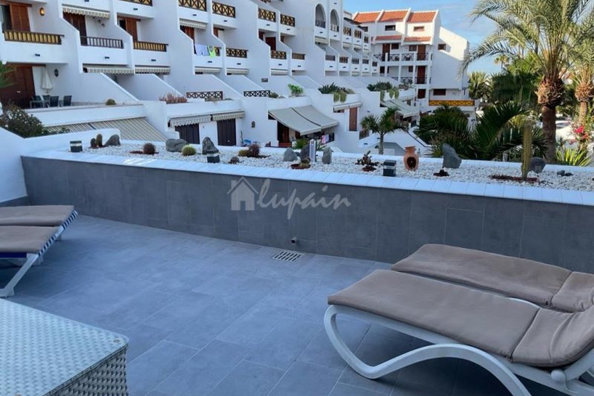 Rare opportunity to purchase in the complex of Parque Santiago 3 in Playa de las Americas. The property has been reformed and comprises of 2 bedrooms with fitted wardrobes and 2 bathrooms. There is an american style fully fitted and equipped kitchen looking onto the lounge/dining room with patio doors leading onto the sunny terrace with garden, complex and pool views. Parque Santiago 3 is on the Golden Mile, which is just on the beach, and around you will find lots of shops, bars, restaurants, banks, as well as four big commercial centres and the Hard Rock Cafe Being right in the hub of this busy tourist area you will never be bored with this great holiday home. Parque Santiago 3 has a great pool area, with a pool bar/restaurant.