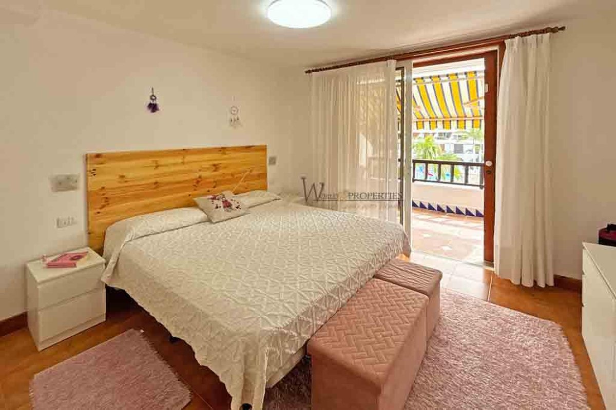 Exclusive apartment in Parque Santiago 3, Playa de las Américas: 2 bedrooms and terrace with views. Luxury World Properties is pleased to offer this charming apartment in the prestigious Parque Santiago 3 complex. Located on the 2nd floor, it has an interior surface of 66 m², distributed in a spacious living-dining room with an open kitchen, 2 bedrooms, and a full bathroom. Both the living room and one of the bedrooms open onto a cozy 16 m² terrace, which offers partial views of the sea and the pool.