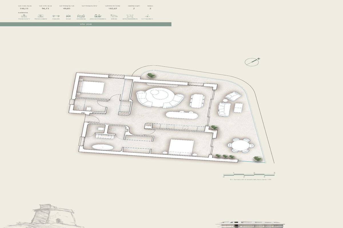 Each apartment includes 2 or 3 parking spaces and 1 storage room. The homes are finished with high end materials and luxury specifications such as large format flooring and wall tiles, fully furnished kitchens equipped with Miele appliances, bathrooms with vanity unit, mirror and shower screens, and fully installed ducted air conditioning.