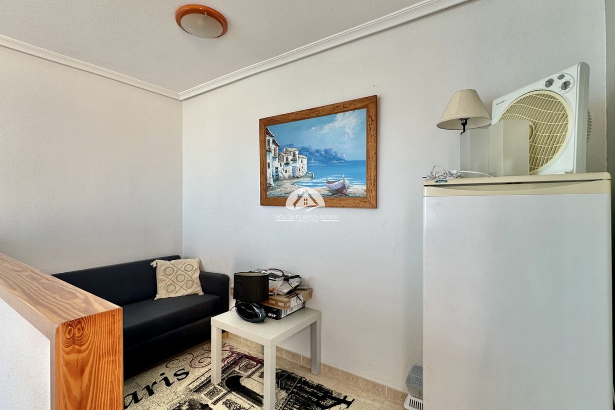 Discover this beautiful duplex located in the prestigious residential complex Zeniamar Phase V, Block 9 — a well-maintained and peaceful community with lush green areas and a large communal pool. This south-facing home is in excellent condition and offers a smart layout across three levels: Bright living and dining area with an integrated kitchen3 spacious bedrooms2 bathrooms + 1 guest toiletUtility room, gallery, and storage areaFront porch and multiple terracesImpressive solarium with both covered and open areas overlooking the poolPrivate 42 m² garden facing the pool Built area: 105 m²Orientation: South Located just steps from Zeniamar Shopping Centre, restaurants, supermarkets, and all everyday amenities — the ideal combination of comfort, convenience, and Mediterranean lifestyle. Extras: Air conditioning, heating pump, fitted wardrobes, community pool, and private garden.