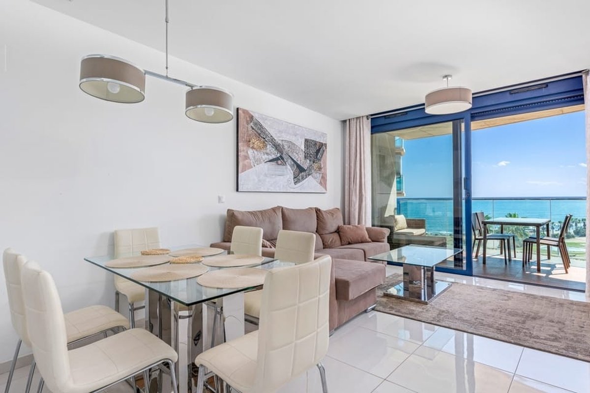 We are delighted to present this exceptional key-ready two-bedroom apartment for sale in Punta Prima, offering uninterrupted Mediterranean views and a truly privileged frontline position. This is a home designed for those who appreciate the rhythm of the sea, the warmth of the Spanish sun, and the effortless blend of comfort and contemporary style.