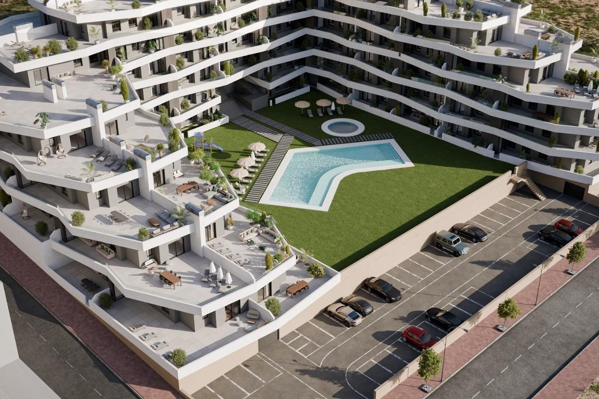 Discover Modern Living at the New Residential Development in San Miguel de Salinas Spacious Apartments with Stunning Amenities This new construction residential complex in San Miguel de Salinas offers contemporary 2- and 3-bedroom apartments with expansive terraces, thoughtfully distributed across seven floors. The gated community provides top-notch facilities, including separate swimming pools for adults and children, lush green areas, a children’s playground, and an adult wellness zone with a biosaludable circuit. Prime Location on the Costa Blanca Nestled in the charming town of San Miguel de Salinas, this development enjoys a strategic location on the Costa Blanca. It’s within walking distance of the town center, where you’ll find all the essential services for daily living, including shops, restaurants, and healthcare facilities. The property is a short drive from several points of interest: Las Colinas and Campoamor Golf Courses: Just 7 km away, perfect for golf enthusiasts. Beaches of Orihuela Costa and Torrevieja: Located approximately 10 km from the residence, offering beautiful sandy shores. Shopping Centers: Zenia Boulevard, a popular shopping destination, is only 9 km away. Alicante Airport: A convenient 50 km drive. Murcia Corvera Airport: About 55 km away, ideal for regional connections. High-Quality Specifications Each apartment is designed with modern finishes and functionality in mind: Fully equipped kitchens with induction cooktops and extractor hoods. Porcelain tile flooring throughout. Compact roller shutters for added privacy and convenience. White laminated wardrobes with overhead storage in bedrooms. Pre-installed air conditioning in the living room and bedrooms. Energy-efficient aerothermal water heaters with a 150-liter capacity. Additionally, all apartments include a designated parking space, with an optional storage room available at an additional cost. About San Miguel de Salinas San Miguel de Salinas is a picturesque municipality in the Vega Baja del Segura region, part of the vibrant Valencian Community. Situated close to the Murcia border, the town offers breathtaking views of the Torrevieja and La Mata lagoons, as well as a peaceful, family-friendly environment. Your New Home Awaits Whether you're looking for a vacation retreat or a permanent residence, this new development in San Miguel de Salinas combines luxury, convenience, and an unbeatable location. Contact us today to schedule a visit and take the first step toward owning your dream property on the Costa Blanca!