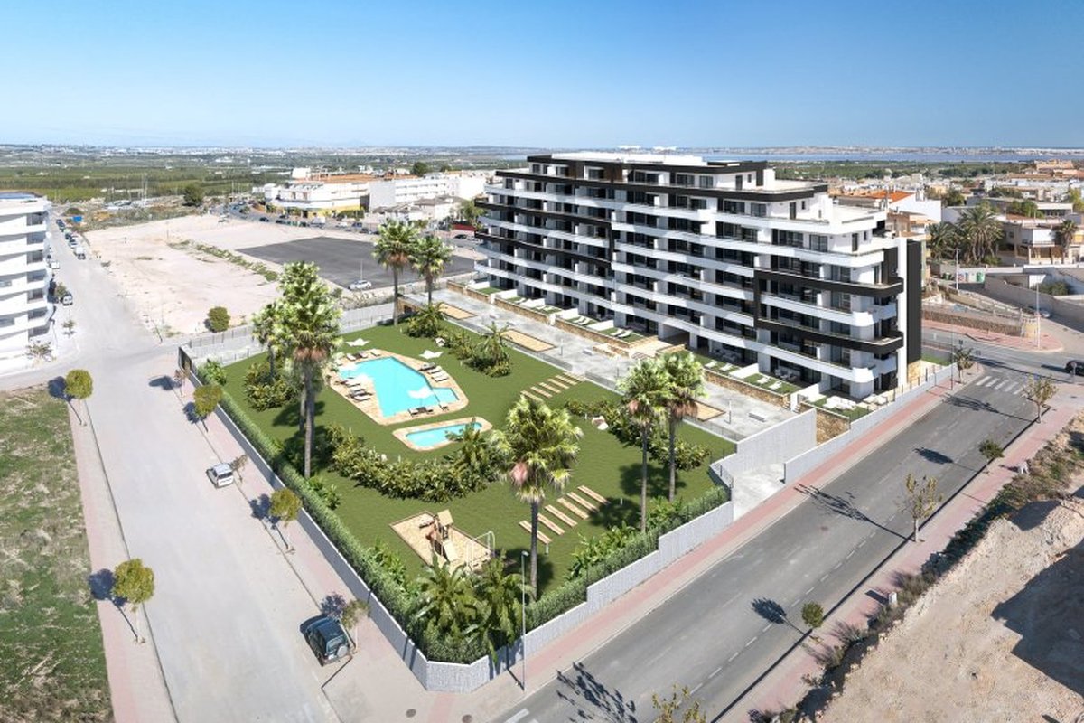 Located in the charming municipality of San Miguel de Salinas, this residential complex offers a variety of housing options that cater to different needs and lifestyles. With a total of 111 units, future residents can choose from Apartments, ground floor units, and Penthouses, each designed to provide comfort and functionality. The proximity to the airport, just 50 km away, adds significant value for those seeking quick and easy connections to other cities and countries. This residential complex is ideal for those who wish to enjoy the tranquility of a picturesque location without sacrificing modern conveniences.OUTDOOR AREASThe outdoor areas of this residential complex are designed to maximize enjoyment of the Mediterranean climate. The homes feature private terraces, perfect for relaxing outdoors and enjoying the surrounding views. Additionally, residents have access to expansive garden areas, offering a green and serene space for walking or resting. The presence of a solarium in some unit types allows for sunbathing in a private and exclusive setting. The community also features a communal pool, ideal for cooling off during warm summer days, and a children's play area, providing a safe and fun space for the little ones.INDOOR AREASThe interiors of the homes are designed to offer maximum comfort and functionality. All units are equipped with air conditioning, ensuring a pleasant environment year-round. Electric blinds and included appliances facilitate daily life, while built-in wardrobes offer ample storage space. The homes are available with two bedrooms and two bathrooms, providing adequate space for families or couples. The option to purchase the homes furnished adds an extra level of convenience, allowing new owners to settle in without additional concerns.COMMON AREASThe residential complex features various common areas that enhance the living experience of its residents. The garden areas offer a natural and relaxing environment, perfect for enjoying a walk or simply resting outdoors. The communal pool is an ideal meeting point for socializing and enjoying the Mediterranean climate, while the children's playground provides a safe and fun space for kids. These facilities are designed to foster a sense of community and offer residents a comfortable and enjoyable lifestyle.SAN MIGUEL DE SALINASSan Miguel de Salinas, located in the province of Alicante, is a quiet mountain village with panoramic views of the surrounding countryside. Although it is not a mass tourist destination, its charm lies in its rural atmosphere and its proximity to popular coastal areas. Tourism in San Miguel de Salinas focuses on its natural surroundings, ideal for hiking and outdoor activities, offering panoramic views of the Mediterranean coastline and the Laguna Salada de Torrevieja. The lifestyle in San Miguel de Salinas is tranquil and rooted in rural life. Residents value calm, communal living and local traditions. The gastronomy is based on typical Mediterranean dishes and local produce. San Miguel de Salinas offers a serene and rural atmosphere for those seeking a quiet life in a natural environment, with easy access to coastal tourist destinations on the Costa Blanca.