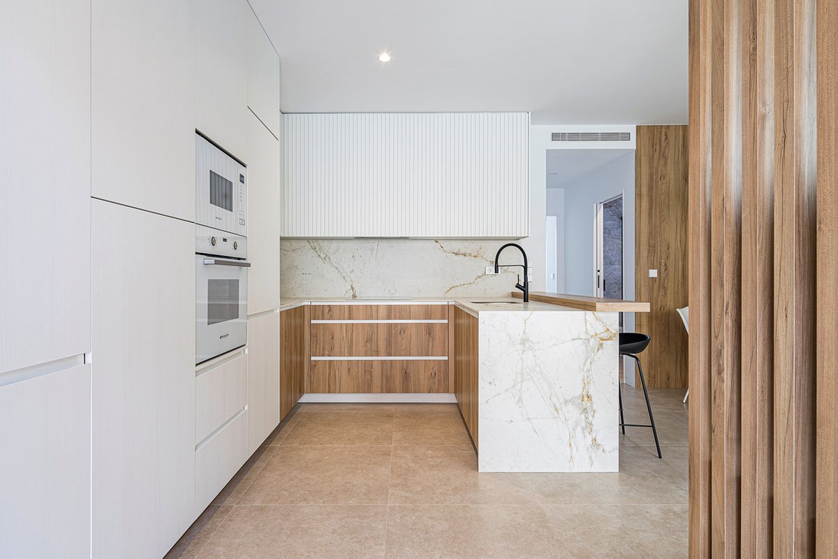 The exteriors of these properties are designed to enjoy the Mediterranean climate. Each bungalow has a private garden, perfect for moments of outdoor relaxation. Additionally, the terraces offer extra space to enjoy sea views and the natural surroundings. The inclusion of a solarium provides an ideal spot for sunbathing in privacy, while pergolas add a touch of elegance and shade, creating a welcoming environment for outdoor gatherings.