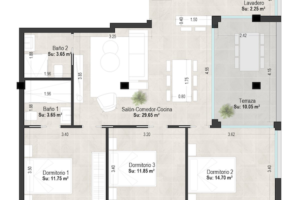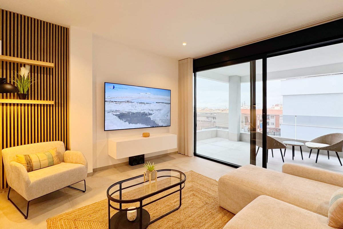 Translated to English: Amplio y luminoso apartamento situado en San Pedro del Pinatar, a tan solo 2 kilómetros del mar, en un entorno tranquilo y bien comunicado que combina lo mejor de la costa con todos los servicios de una localidad viva durante todo el año. La vivienda cuenta con tres dormitorios y dos baños completos, ideal para familias, como segunda residencia o como inversión para el alquiler vacacional. Dispone de una amplia terraza perfecta para disfrutar del clima mediterráneo, ideal para comer al aire libre, relajarse al sol o compartir momentos en familia o con amigos.