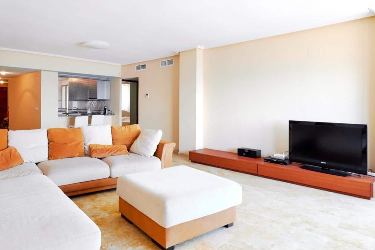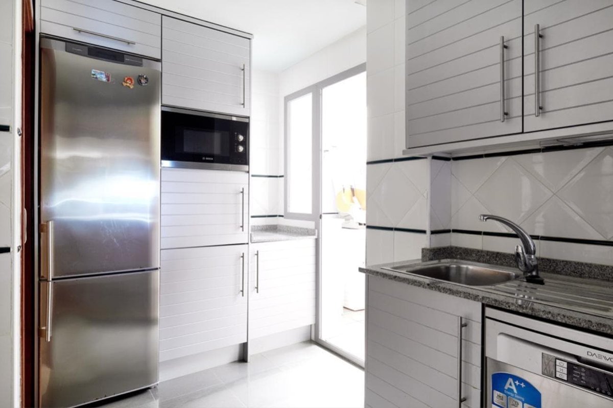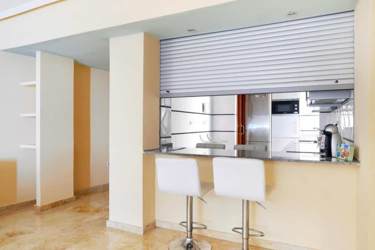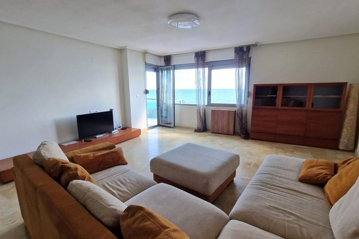 It has an entrance hall, a spacious living-dining room with the terrace with direct sea views, a large semi-independent fully equipped kitchen, a gallery (with washing machine, sink, heater,...), 3 double bedrooms with fitted wardrobes and 2 bathrooms (one with shower, one with bathtub). The master bedroom has access to the terrace with sea views.
