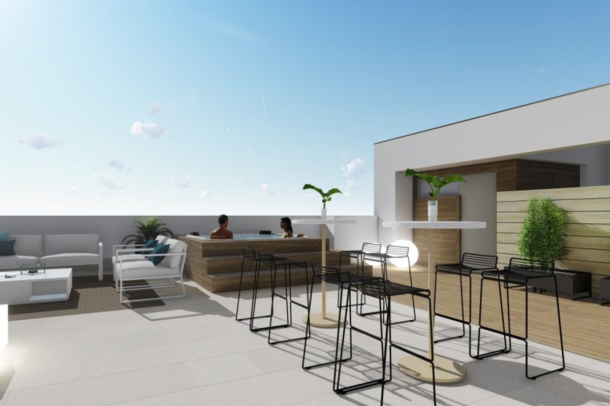 Located in the charming town of Torrevieja, this residential complex offers a selection of 16 properties including Apartments, ground floors, and Penthouses. Designed for those seeking a home near the sea, it is just 250 meters from the coast, allowing enjoyment of the sea breeze and spectacular views. Additionally, its proximity to the airport, 44 kilometers away, facilitates international travel, making it an ideal option for both permanent residence and vacation getaways. The variety of available types ensures that every buyer can find the option that best suits their needs, whether it be a cozy apartment or a spacious penthouse.OUTDOOR AREASThe exteriors of these properties are designed to maximize enjoyment of the Mediterranean climate. Each home features a private terrace, perfect for outdoor relaxation or al fresco dining. Additionally, some types include a solarium, providing additional space for sunbathing or creating a rooftop garden. The privileged location just 250 meters from the sea allows for coastal walks and water activities at any time. The modern architecture and quality finishes ensure that each home integrates harmoniously with its surroundings, offering a tranquil and elegant retreat.INDOOR AREASThe interior of the homes is designed to offer comfort and functionality. Layout options include properties with 1, 2, and 3 bedrooms, with 1 or 2 bathrooms, adapting to different family needs. Ceramic floors provide a modern touch and are easy to maintain, while built-in wardrobes optimize storage space. The pre-installation of air conditioning ensures a pleasant environment all year round. Additionally, the homes are equipped with appliances, facilitating daily life from day one. The private jacuzzi is an additional luxury that allows for moments of relaxation in the privacy of the home.COMMON AREASThe residential offers attractive common areas including a communal jacuzzi, ideal for relaxing and socializing with neighbors. Additionally, the communal solarium provides a shared space to enjoy the sun and panoramic views of the area. These facilities are designed to enhance the residents' quality of life, offering leisure and relaxation spaces without needing to leave the complex.TORREVIEJATorrevieja, on the Costa Blanca, is a popular tourist destination known for its wide beaches, Mediterranean climate and vibrant atmosphere. It attracts tourists for its beautiful fine sandy beaches, such as Playa del Cura or Playa de la Mata, ideal for swimming and water sports. Tourism in Torrevieja focuses on its beaches, its lively promenade and its nightlife. It also stands out for its salt lagoon, the Salinas de Torrevieja, known for its therapeutic properties and for being a unique environment. The lifestyle in Torrevieja is dynamic and sea-oriented. Residents and visitors enjoy an active coastal life, taking part in water activities, local festivals and a lively nightlife. Torrevieja offers a vibrant coastal atmosphere for those looking to enjoy the sea, beaches and lively life on the Costa Blanca, fusing beach tourism with a wide range of leisure and entertainment.