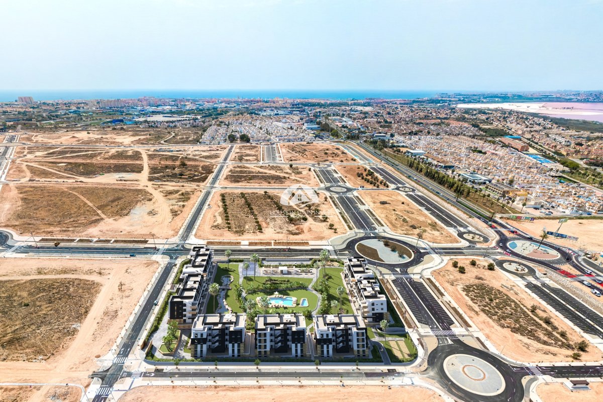 Located in the beautiful town of Torrevieja, this residential complex offers a selection of 80 properties including Apartments, ground-floor units, and Penthouses. The location is ideal for those looking to enjoy the coast, as it is just 5 km from the sea. Additionally, the nearest airport is 44 km away, making access easy for residents and visitors. This residential complex is perfect for those who wish to combine comfort and proximity to essential services, in an environment that offers tranquility and natural beauty.OUTDOOR AREASThe outdoor spaces of this residential complex in Torrevieja are designed to maximize enjoyment of the Mediterranean climate. Each property features a terrace, ideal for outdoor relaxation. Additionally, some types include a solarium, providing extra space for sunbathing or enjoying the views. The proximity to the sea, just 5 km away, allows for coastal walks and water activities. Garage options ensure convenience and security for residents' vehicles.INDOOR AREASThe homes are equipped with modern features that ensure comfort and functionality. Porcelain stoneware floors add a touch of elegance and durability. Electric shutters and included appliances make daily life easier, while air conditioning ensures a pleasant environment year-round. Built-in wardrobes offer efficient storage, and the layout includes two bedrooms and two bathrooms, catering to the needs of different types of families.COMMON AREASThe residential complex features a variety of common areas designed for the enjoyment of all residents. Among them, a community pool stands out, perfect for cooling off during the warm summer days. The landscaped areas offer a green space for strolling or relaxing, while the paddle court is ideal for sports enthusiasts. Additionally, the little ones can enjoy a safe and well-equipped children's playground.TORREVIEJATorrevieja, on the Costa Blanca, is a popular tourist destination known for its wide beaches, Mediterranean climate and vibrant atmosphere. It attracts tourists for its beautiful fine sandy beaches, such as Playa del Cura or Playa de la Mata, ideal for swimming and water sports. Tourism in Torrevieja focuses on its beaches, its lively promenade and its nightlife. It also stands out for its salt lagoon, the Salinas de Torrevieja, known for its therapeutic properties and for being a unique environment. The lifestyle in Torrevieja is dynamic and sea-oriented. Residents and visitors enjoy an active coastal life, taking part in water activities, local festivals and a lively nightlife. Torrevieja offers a vibrant coastal atmosphere for those looking to enjoy the sea, beaches and lively life on the Costa Blanca, fusing beach tourism with a wide range of leisure and entertainment.