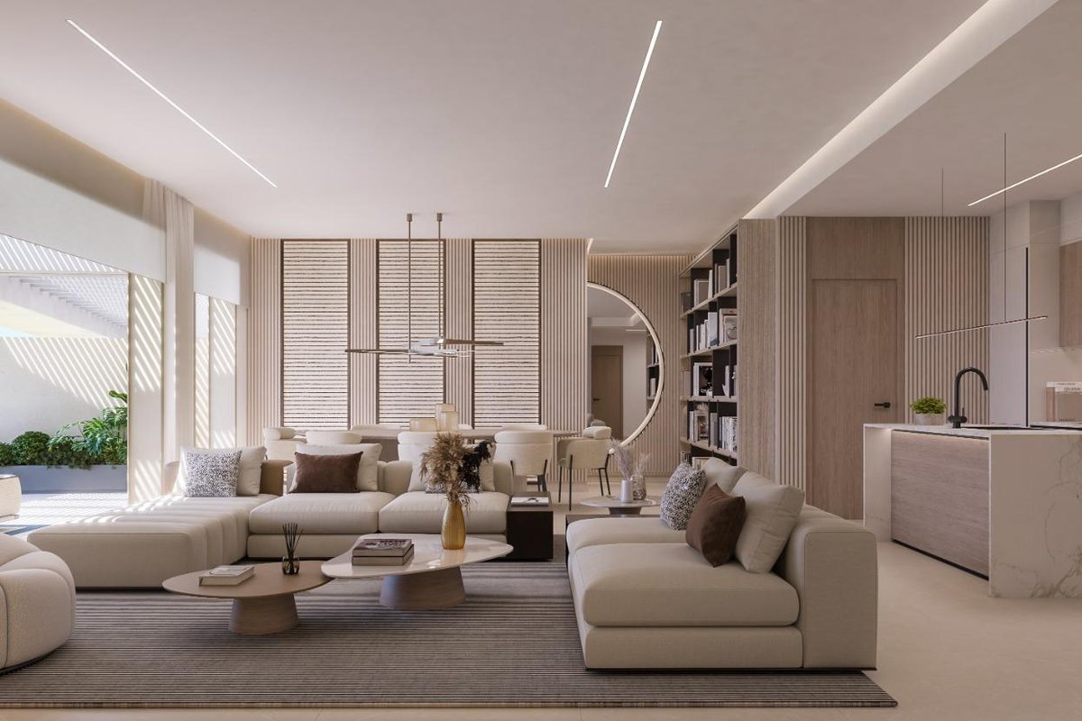 The development blends modern architecture with natural surroundings, creating homes that are both sophisticated and functional. Large format flooring provides visual continuity between indoor and outdoor spaces, while floor to ceiling windows maximize natural light and enhance the connection with the landscape. Open plan living areas with designer kitchens and premium appliances are designed for both everyday comfort and social enjoyment.