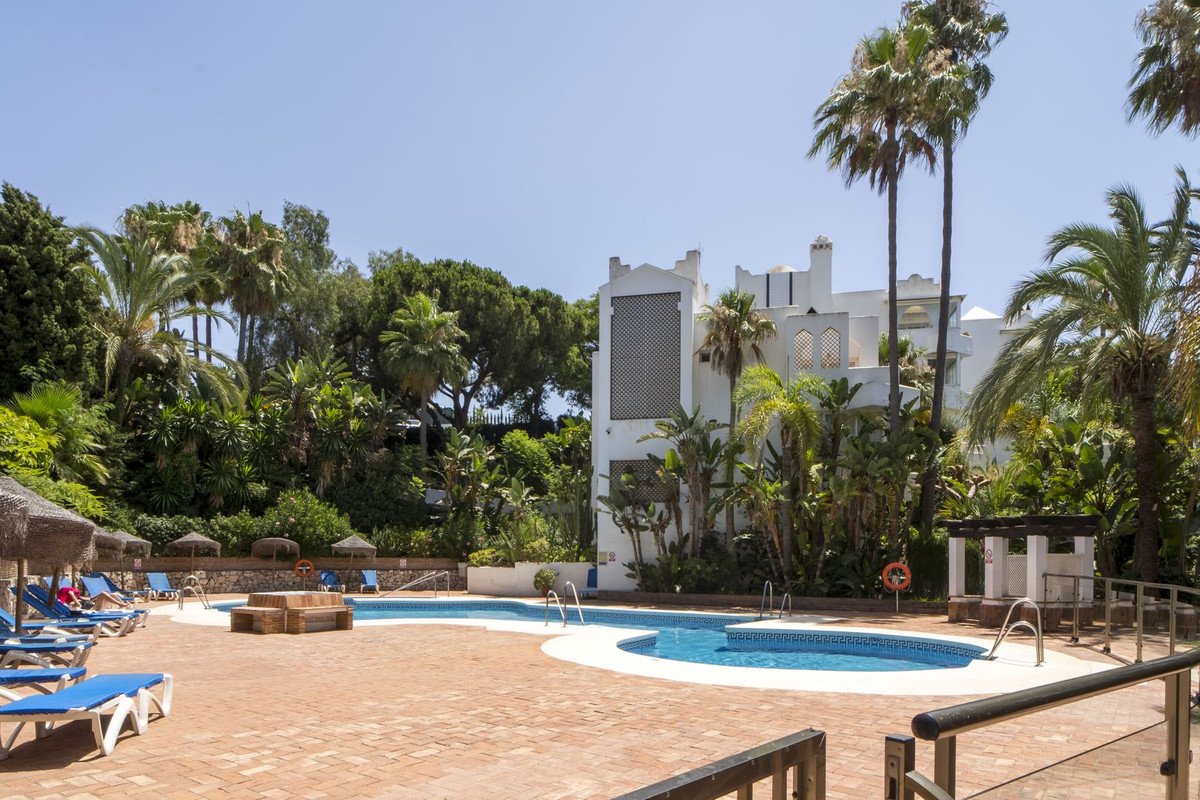 Discover this spacious ground floor apartment, a true gem in Marbella East, that perfectly combines romantic Andalusian-style architecture with a modern design and renovation.
