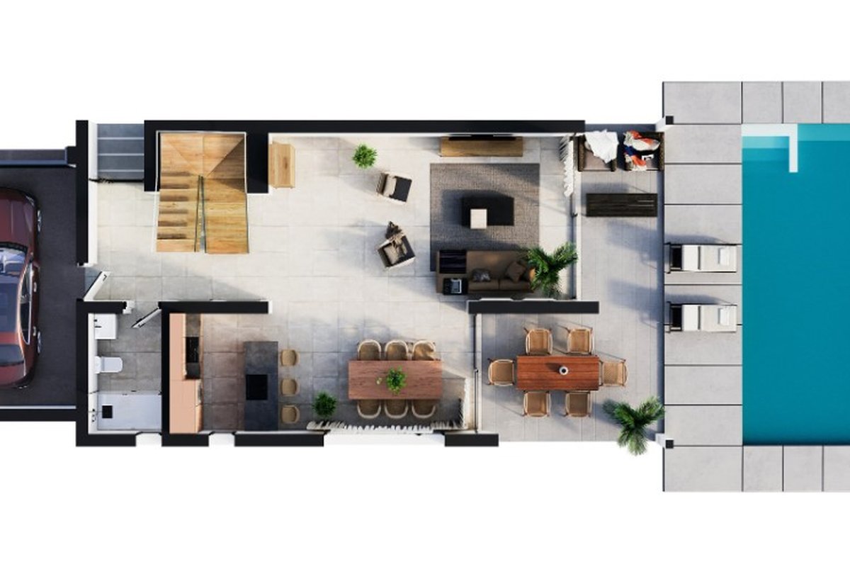 Sal al exterior y disfruta de los alrededores llenos de espacios verdes. Además, las villas ofrecen acceso a playas cercanas, permitiéndote disfrutar del mar a pocos pasos de tu hogar. Estas residencias brindan un entorno tranquilo donde la vida contemporánea se conecta de manera armoniosa con la naturaleza.