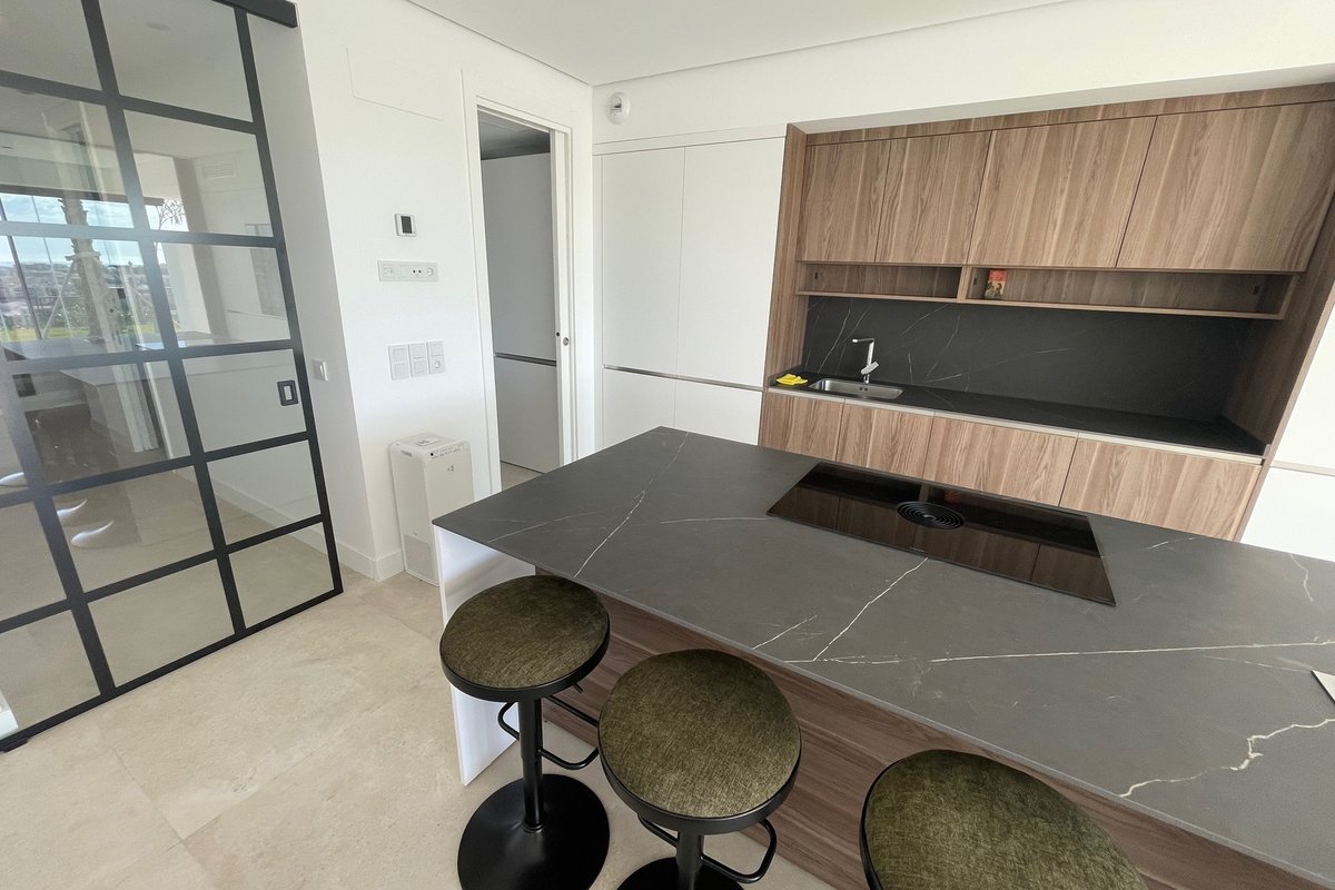 La vivienda cuenta con 4 dormitorios, 3 baños, 4 grandes armarios empotrados y roperos, además de patio interior para dos dormitorios, gran alacena o despensa para la cocina, isla en la cocina, domótica, calefacción y aire acondicionado centralizado y con servicio individualizado por estancias, mobiliario todo nuevo incluido SIN ESTRENAR. Como mejora a la vivienda que se vende sin estrenar, se ha colocado cortinas de cristal en todo el perímetro exterior de la terraza, convirtiéndose en otra estancia más acogedora y cálida para los días de invierno. Además la vivienda lleva como anejos, un gran trastero en la misma planta de la vivienda, y dos plazas de garaje grandes unidas con todo lo necesario para los nuevos vehículos eléctricos. En la urbanización de lujo contarás con varias piscinas, zona de restauración, gimnasio, pistas de pádel y otros extras exclusivos para los residentes.