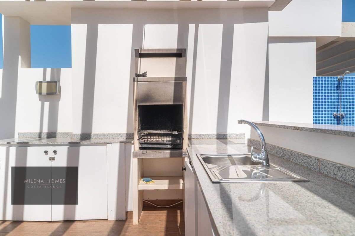 Luxury Penthouse on the Front Line of the Sea – Sea Senses, Punta Prima Exclusive 124 m² luxury penthouse located on the front line of the sea, within the prestigious Sea Senses residential complex in Punta Prima (Torrevieja). A unique property that perfectly combines design, comfort and breathtaking panoramic views of the Mediterranean Sea. The property features 3 spacious bedrooms and 2 fully equipped bathrooms, with a modern and bright layout. The open-plan living and dining area opens onto a spectacular terrace with direct sea views, ideal for enjoying the Mediterranean climate all year round. The fully fitted kitchen offers high-quality finishes and excellent functionality. Situated on the 9th floor, this penthouse guarantees privacy, natural light and unobstructed views. It includes a private parking space and is part of a high-end residential complex offering infinity swimming pools, landscaped gardens, gym, spa, 24-hour security and direct access to the seafront promenade. An unbeatable location, just steps from the beach, restaurants and all amenities, with excellent transport connections. Ideal as a permanent residence, a second home or a high-end investment.