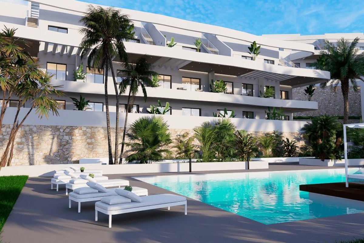 Located in the charming town of Finestrat, this residential complex offers a variety of housing options including apartments, ground-floor units, and penthouses. With a total of 40 properties, each has been designed to maximize comfort and functionality. The location is ideal for those looking to enjoy sea views, as it is just 5 km from the coast. Additionally, golf enthusiasts will appreciate the proximity of a golf course just 0.9 km away. This combination of features makes this residential an attractive option for those seeking a balance between tranquility and accessibility to services and leisure activities.OUTDOOR AREASThe outdoor areas of this residential in Finestrat are designed to offer an exceptional outdoor lifestyle. The properties feature terraces and, in some cases, private gardens, providing a perfect space to enjoy the Mediterranean climate. Additionally, residents can enjoy a solarium, ideal for relaxing and sunbathing in a private setting. The proximity to the sea, just 5 km away, allows for spectacular views and the sea breeze, creating an atmosphere of serenity and well-being.INDOOR AREASThe interior of the homes is carefully designed to offer comfort and modernity. The apartments, ground-floor units, and penthouses feature porcelain stoneware floors, adding an elegant touch and easy maintenance. All properties are equipped with air conditioning, ensuring a pleasant environment year-round. Built-in wardrobes provide ample storage space, while the video intercom adds an extra level of security and convenience. The layout includes two bedrooms and two bathrooms, catering to the needs of different types of families.COMMON AREASThe residential offers a wide range of common areas that enhance the living experience of its residents. Among the facilities are a community pool, perfect for cooling off during hot summer days, and a community jacuzzi for relaxation. Sports enthusiasts can enjoy a paddle court and a community gym, while the little ones have a children's play area at their disposal. The landscaped areas provide a green and tranquil environment, ideal for walking or simply enjoying the outdoors. Additionally, the residential includes a community garage, providing convenience and security for residents' vehicles.FINESTRATFinestrat, in the province of Alicante, is a place that combines rural serenity with proximity to popular tourist areas. Although it is not a major tourist destination, its charm lies in its natural beauty and tranquil atmosphere. Tourism in Finestrat focuses on its mountainous surroundings and its proximity to attractions such as the Terra Mitica theme park and its nearby coves, such as Cala Finestrat, ideal for enjoying the sea. The lifestyle in Finestrat is peaceful and nature-oriented. Residents enjoy the quiet life in a rural environment, where tranquillity is valued and community closeness is encouraged. The local gastronomy is based on typical regional dishes with Mediterranean influences. Finestrat offers a serene and natural environment for those seeking a peaceful life close to well-known tourist destinations on the Costa Blanca.